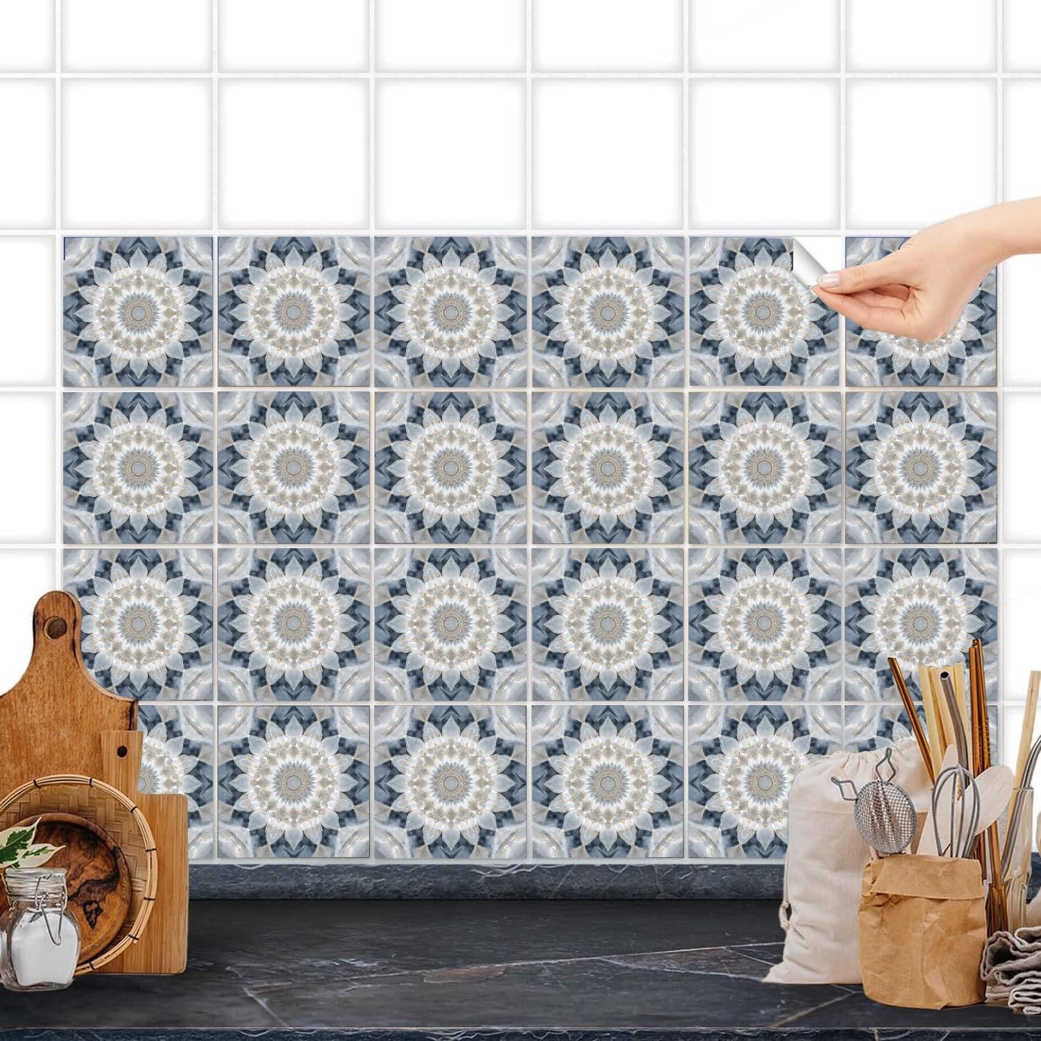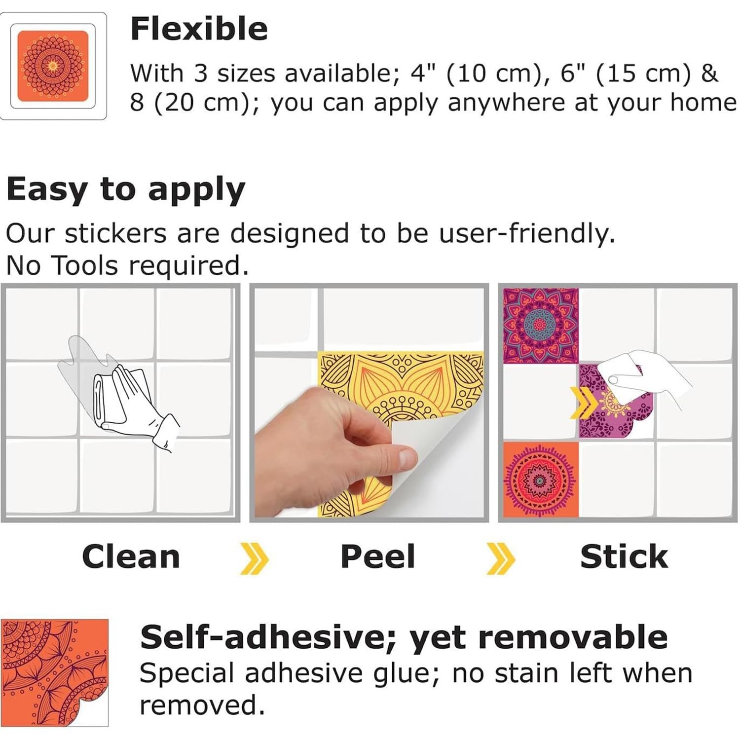 Set Name: Mandala Tile Wall Stickers - 24 Pcs