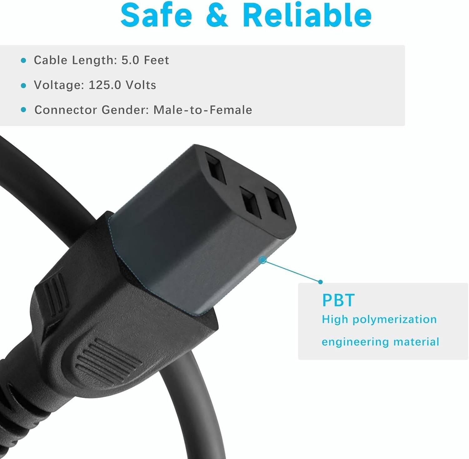 5Ft Universal PC Power Cord, 3 Prong AC Charger Plug Cable Power Supply with ...