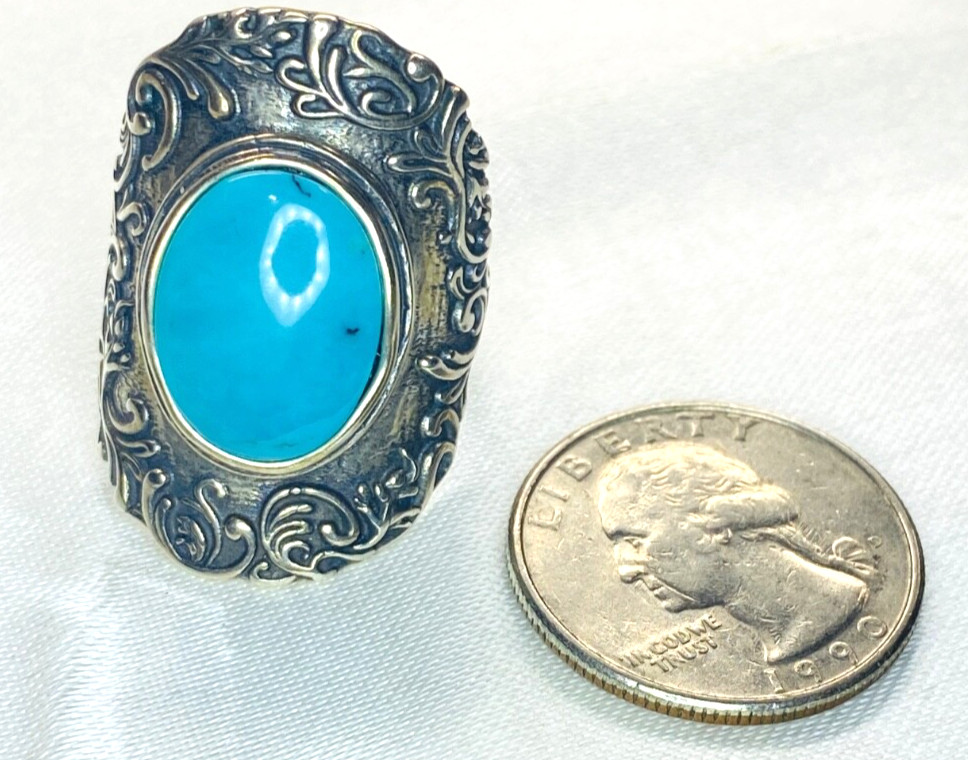 как выглядит Vintage Sterling Silver 925 Orpaz Israel Turquoise Saddle Ring Sz 10 фото