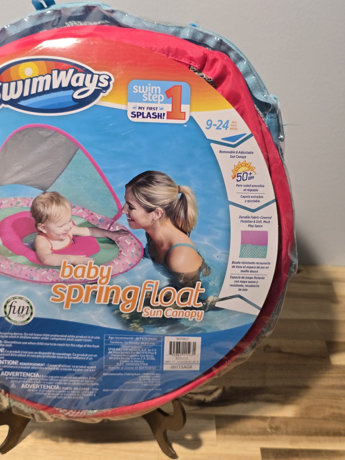 как выглядит SwimWays Swim Step 1 Baby Spring Float Sun Canopy Pink With Mermaid Unicorns фото