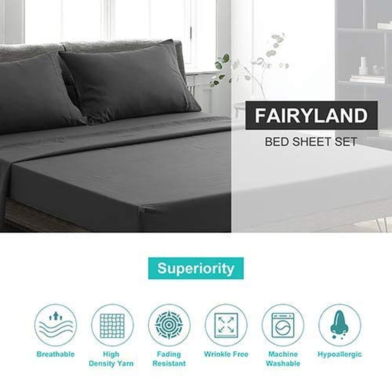 FAIRYLAND Full Size Sheet Set - Microfiber 4-Piece Bedding Set Dark Grey