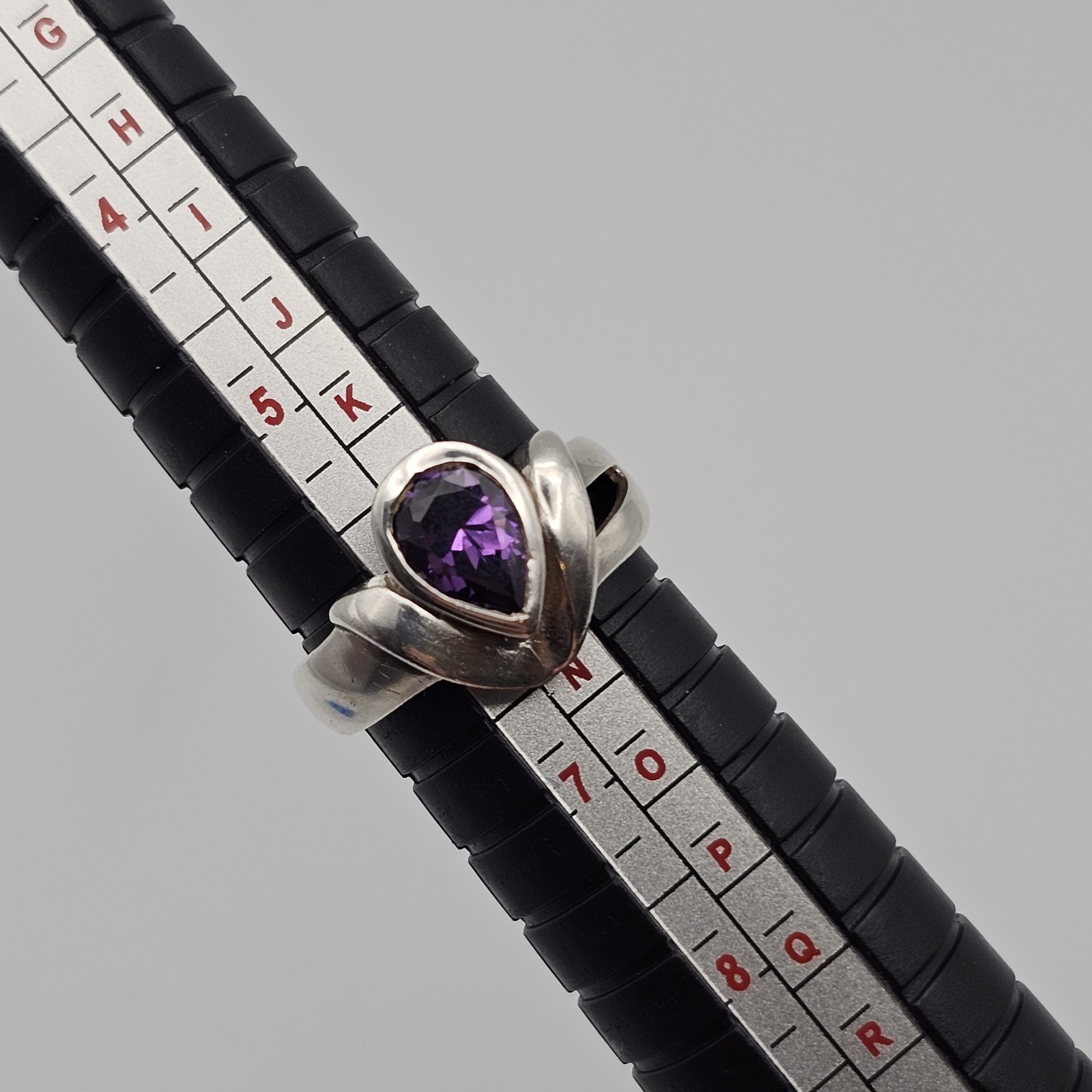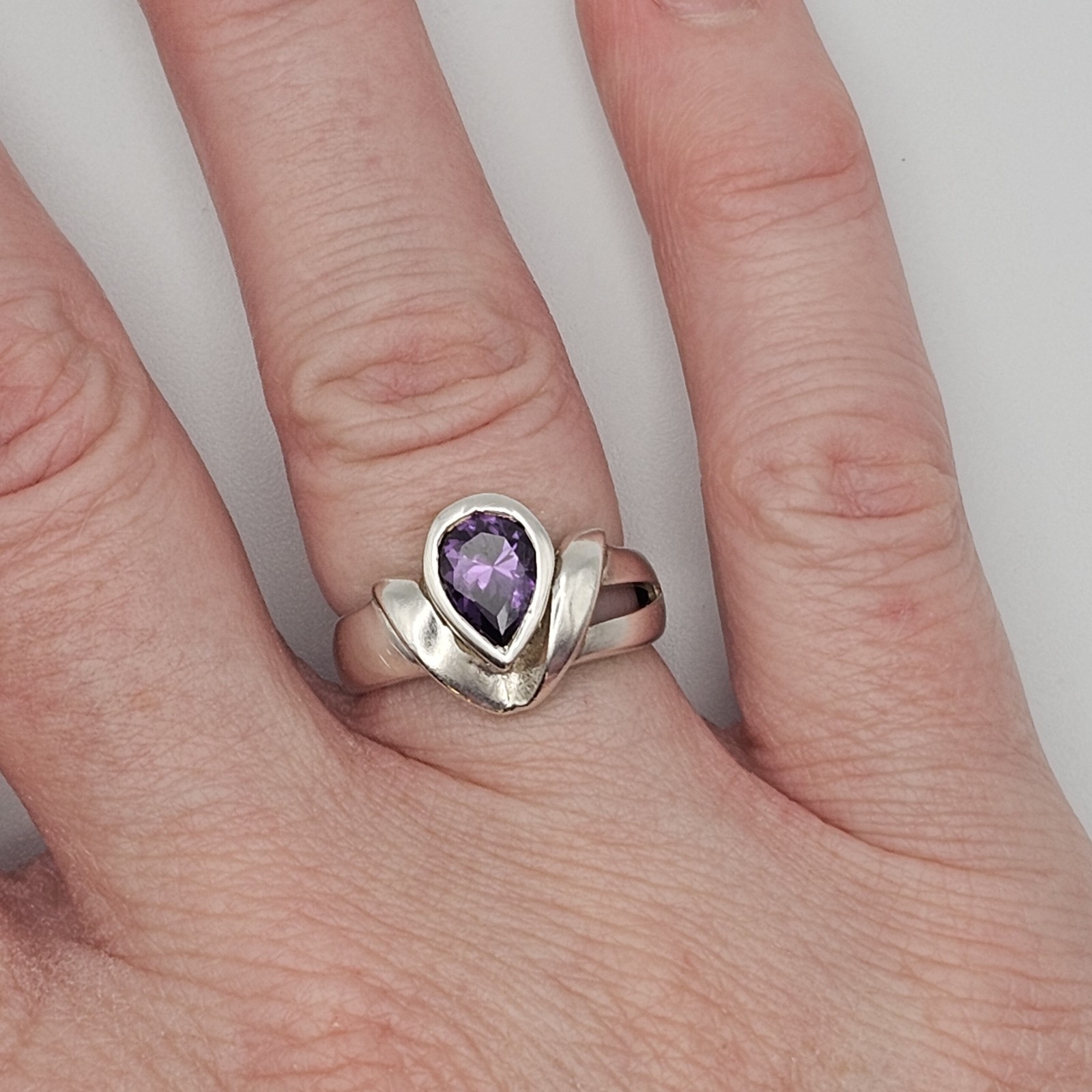 как выглядит Sterling Silver Ring Purple Amethyst Pear Cut Stamped 925 Size 6 фото