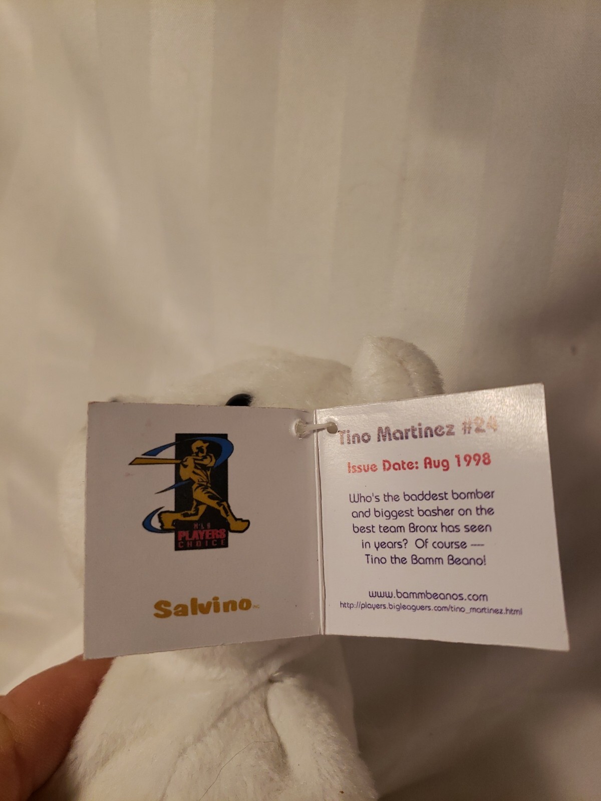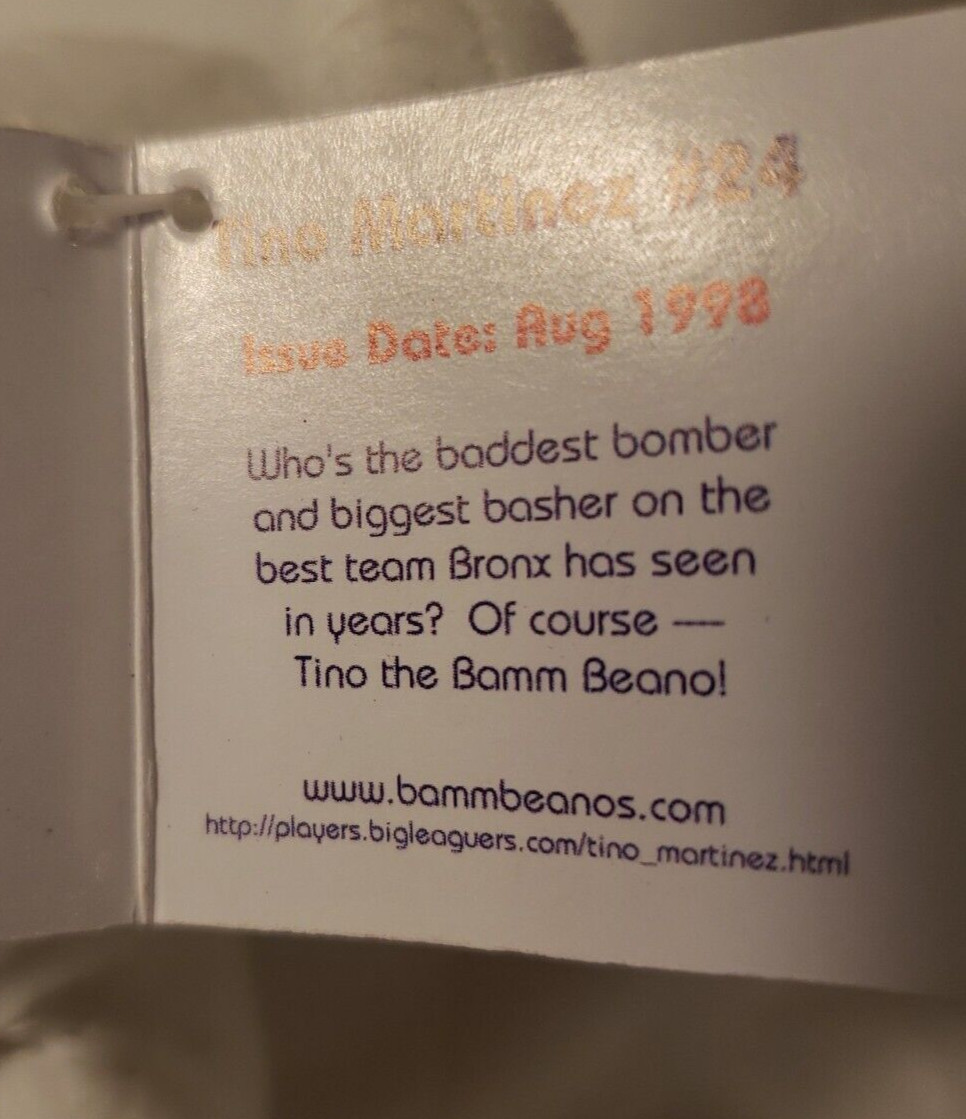 • Vintage 1998 MLB Salvino's Bamm Beano 9" Plush Bear Tino Martinez 24 NY Yankees