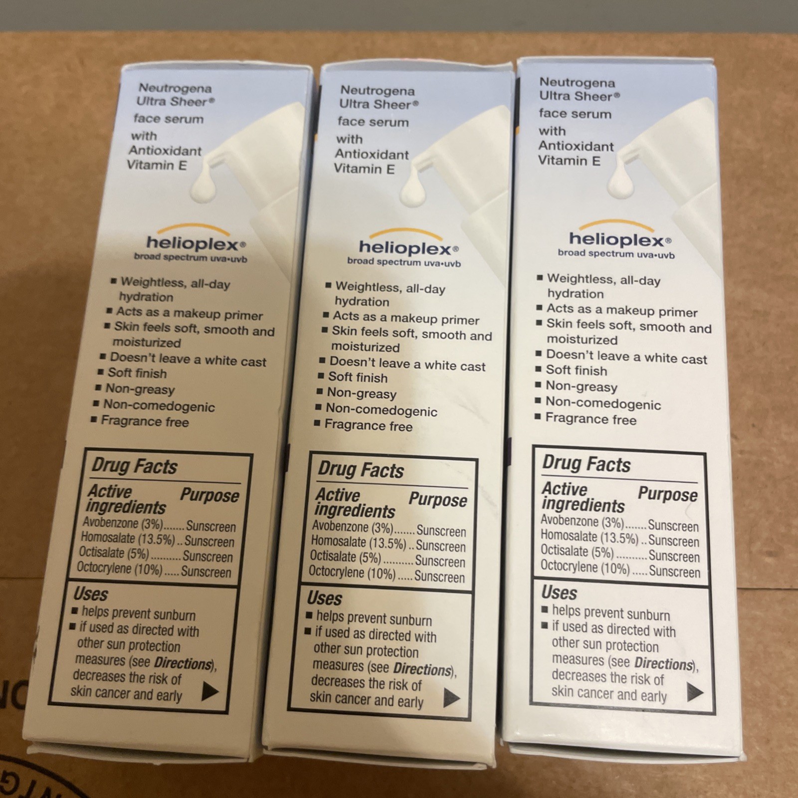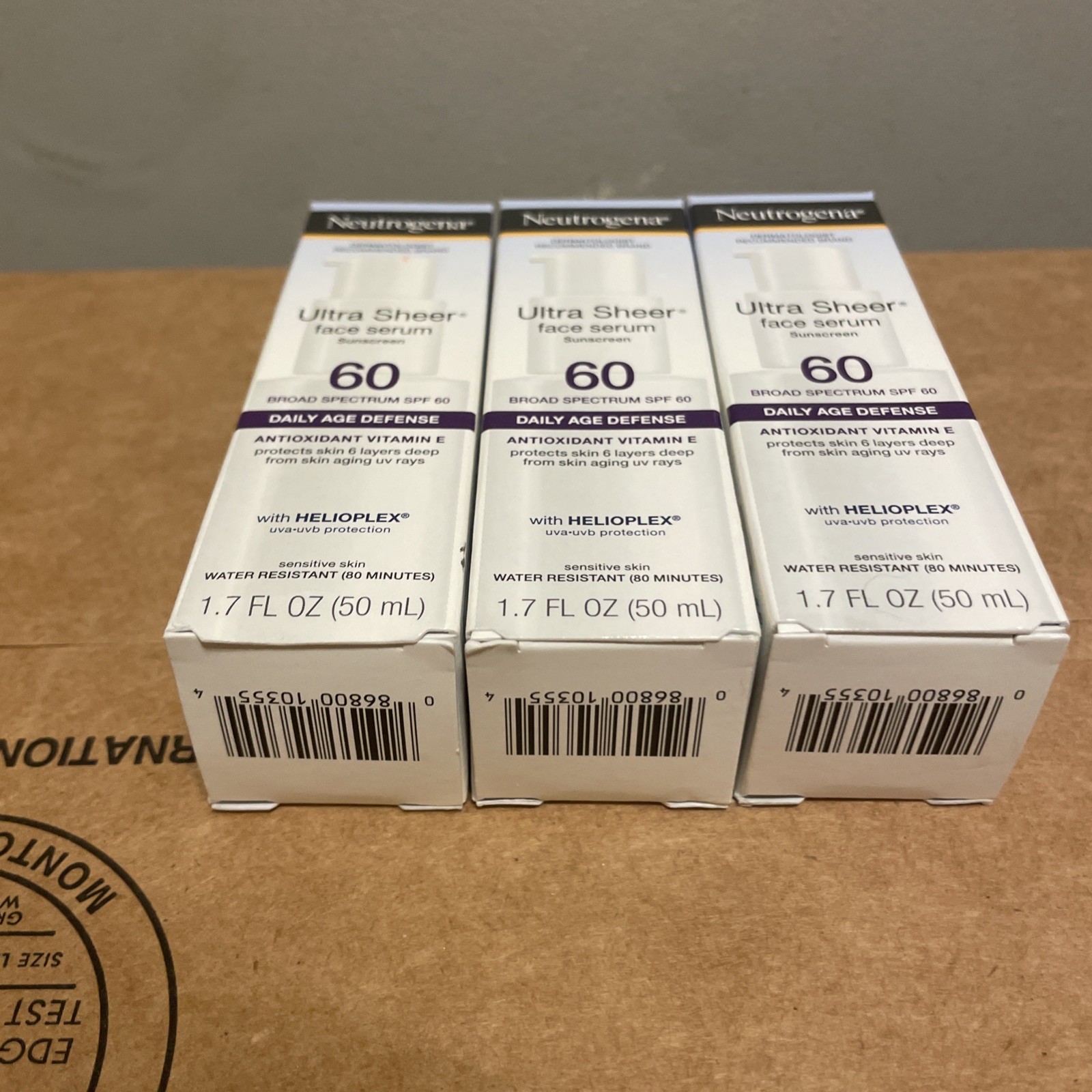 3 pk Neutrogena Ultra Sheer SPF 60 Moisturizing Face Serum Lotion 1.7oz 10/2027