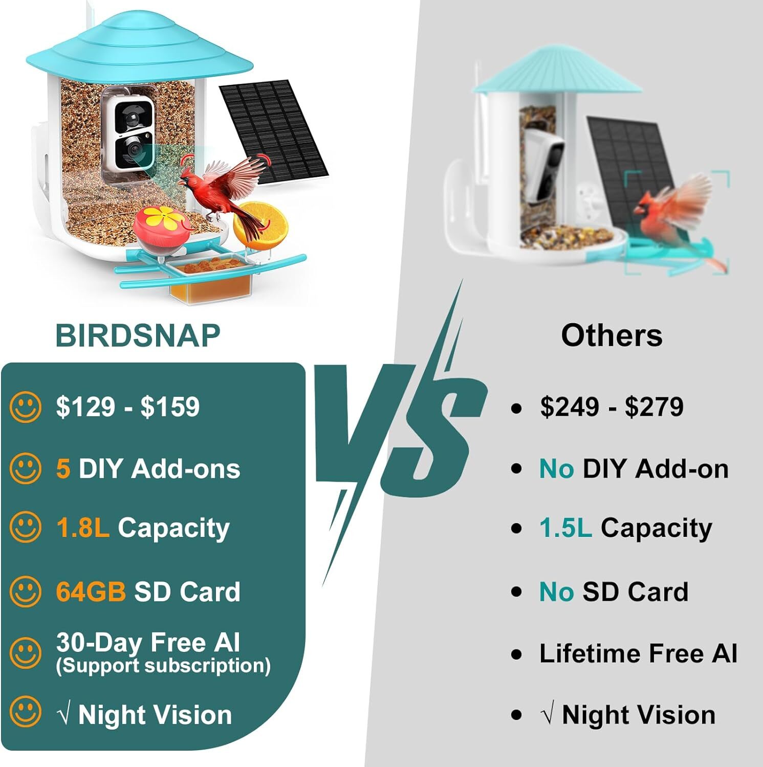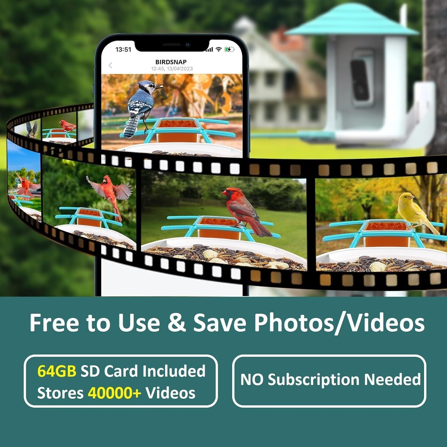 birdsnap TUC- Smart Bird Feeder with Camera Solar Panel 64G SD Card 6-in-1