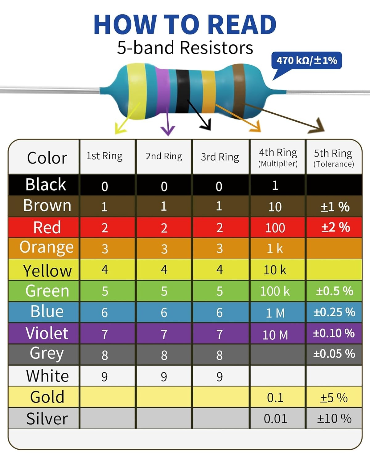 1050 Pcs 30 Values Resistor Kit 1/4 W -1 Metal Film Fixed Resistors Assortment