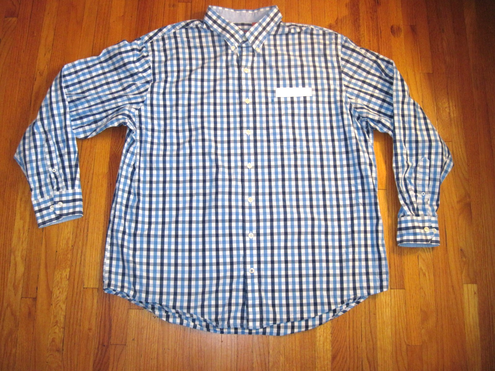 как выглядит Izod Mens Easy Size 2XLT Care Blue/Blue Long Sleeve Check Oxford Dress Shirt фото