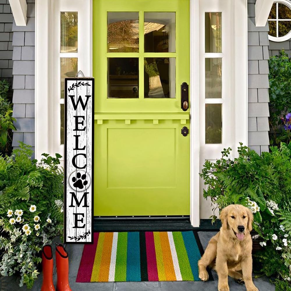 Welcome Sign for Front Door, 47 x 7.9 Standing Large Wooden Welcome Porch D...