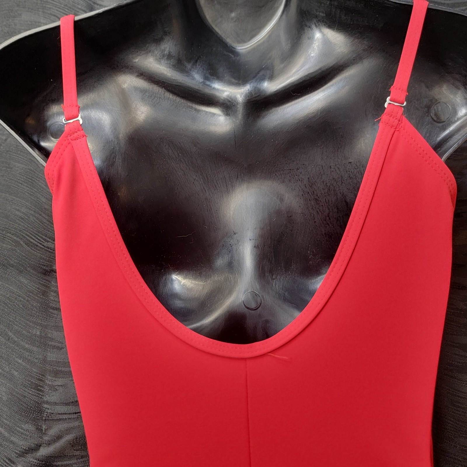 как выглядит Capezio Red Camisole Leotard V-neck Front/Back Adjustable Strap Ballet Leg Sz. L фото