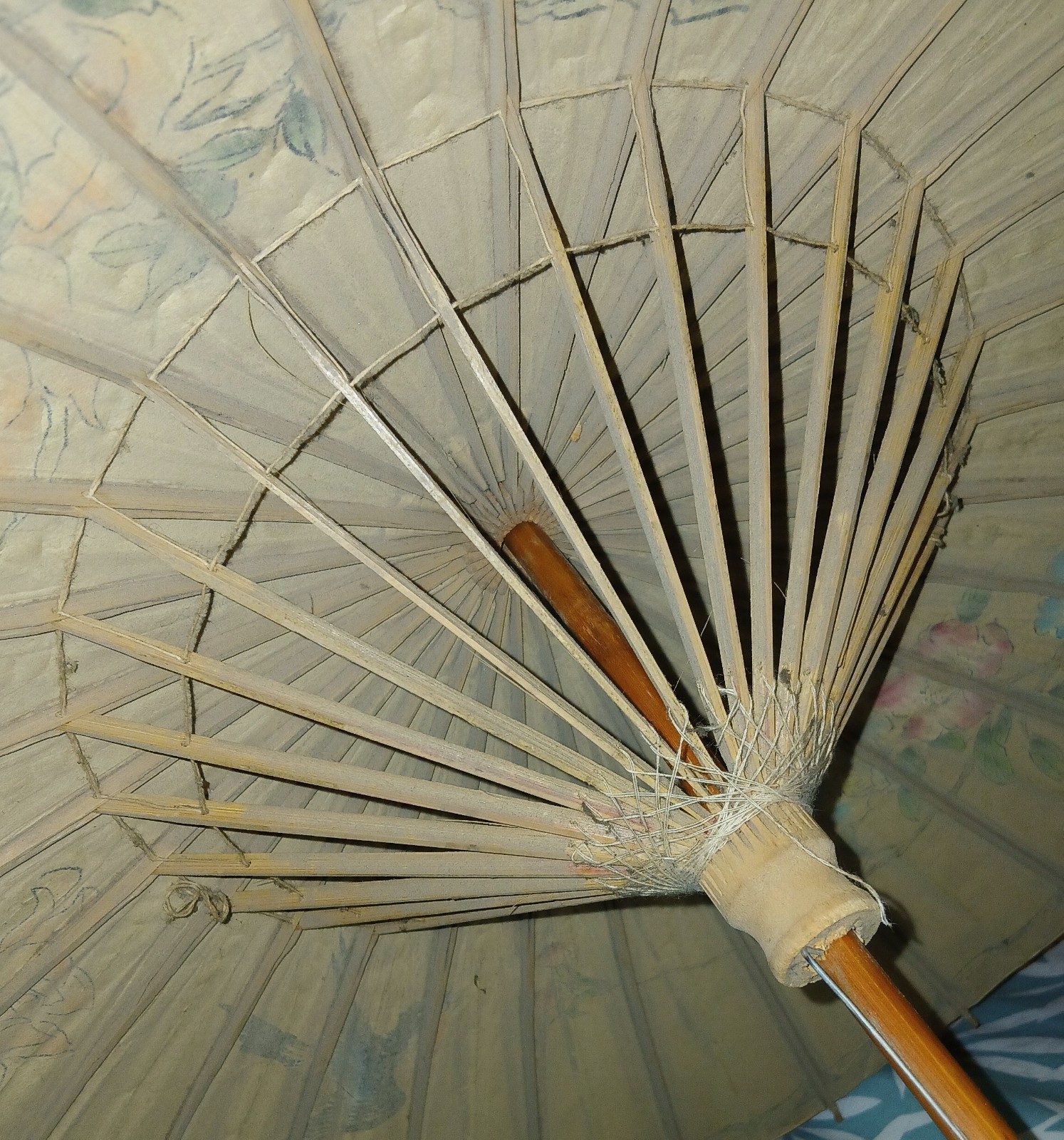 как выглядит Double Parasol / Double Umbrella w/ Colorful Birds Flowers, Rice Paper, Bamboo фото