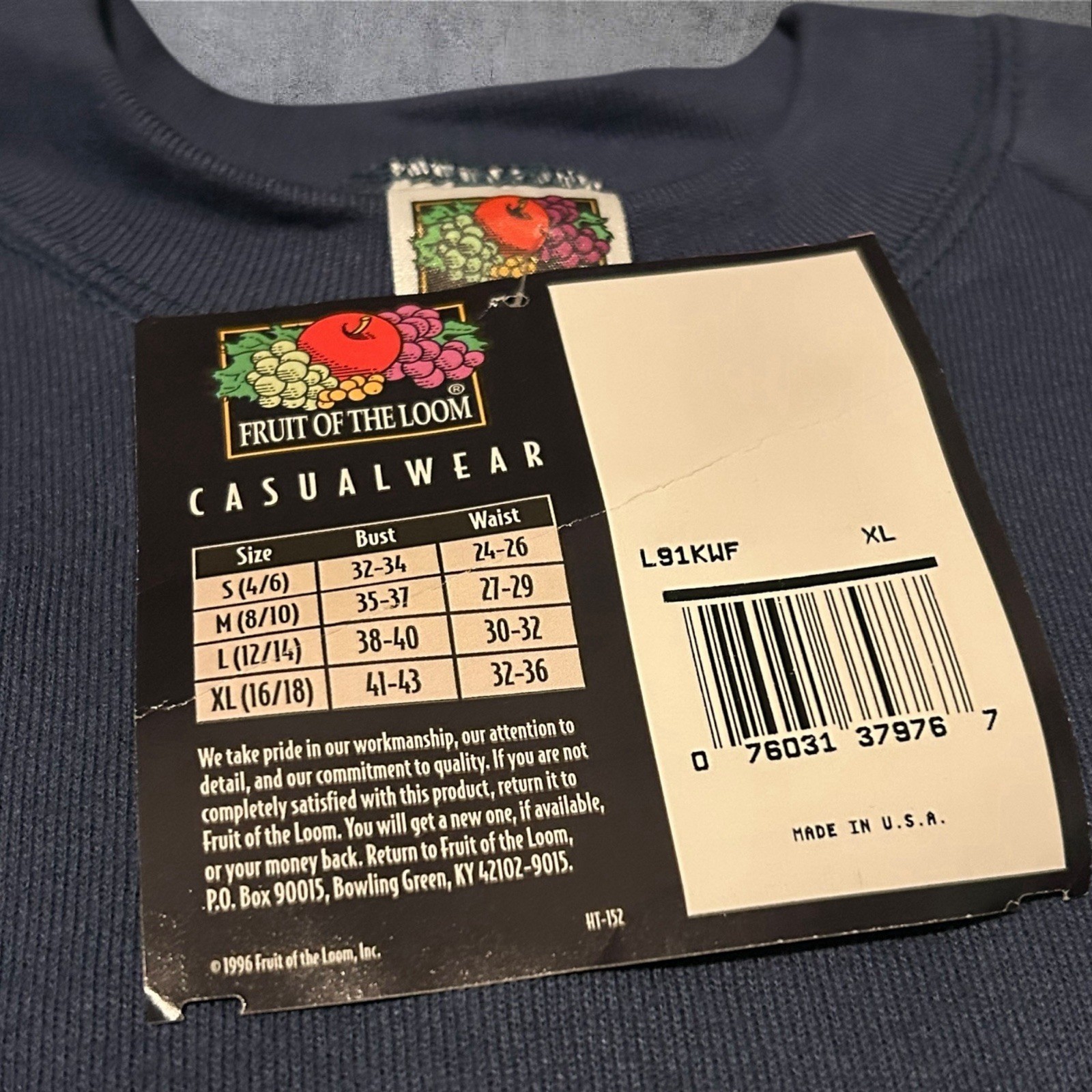 как выглядит NEW/OLD Stock VTG 90s Fruit Of The Loom Women s Crewneck Sweatshirt Navy Blue XL фото
