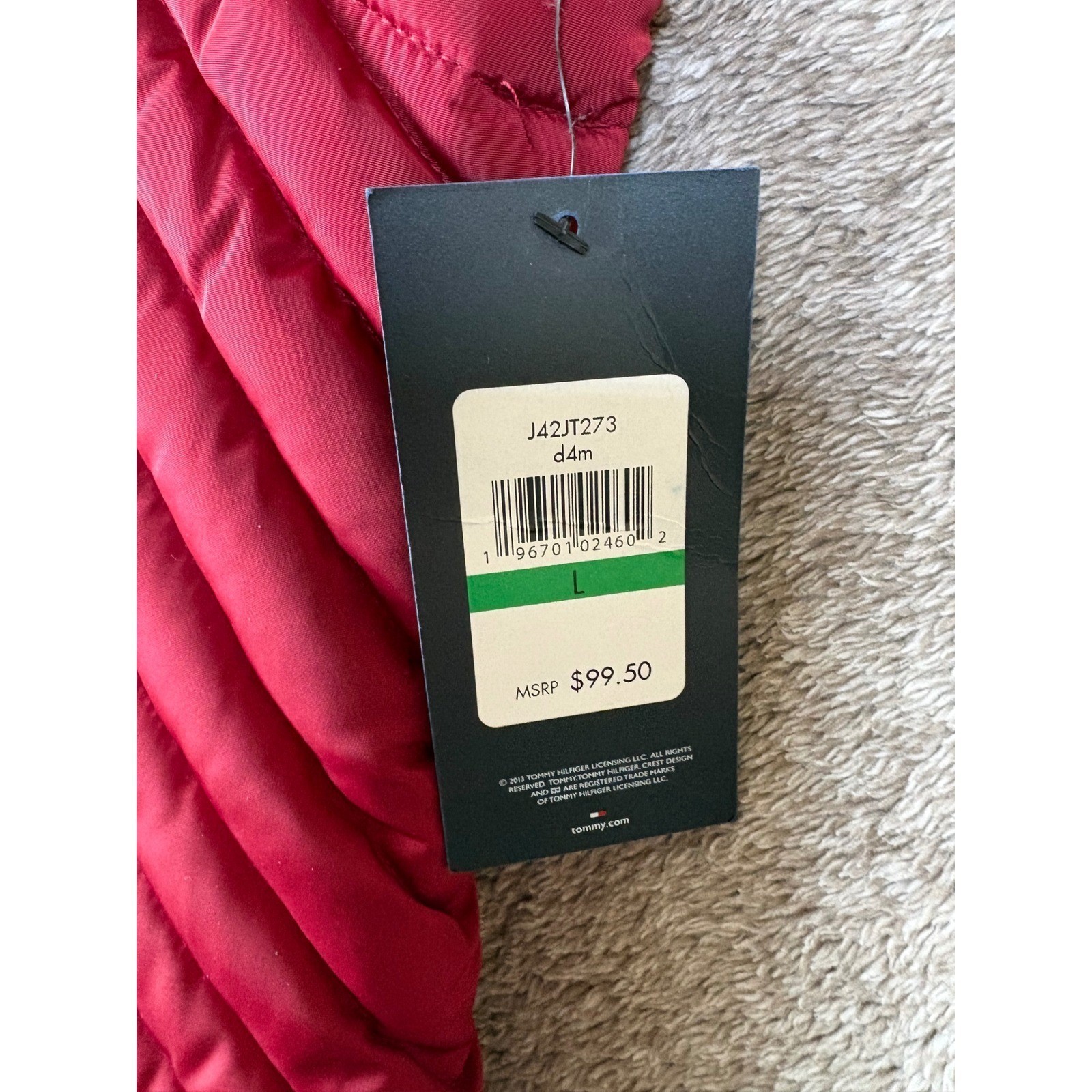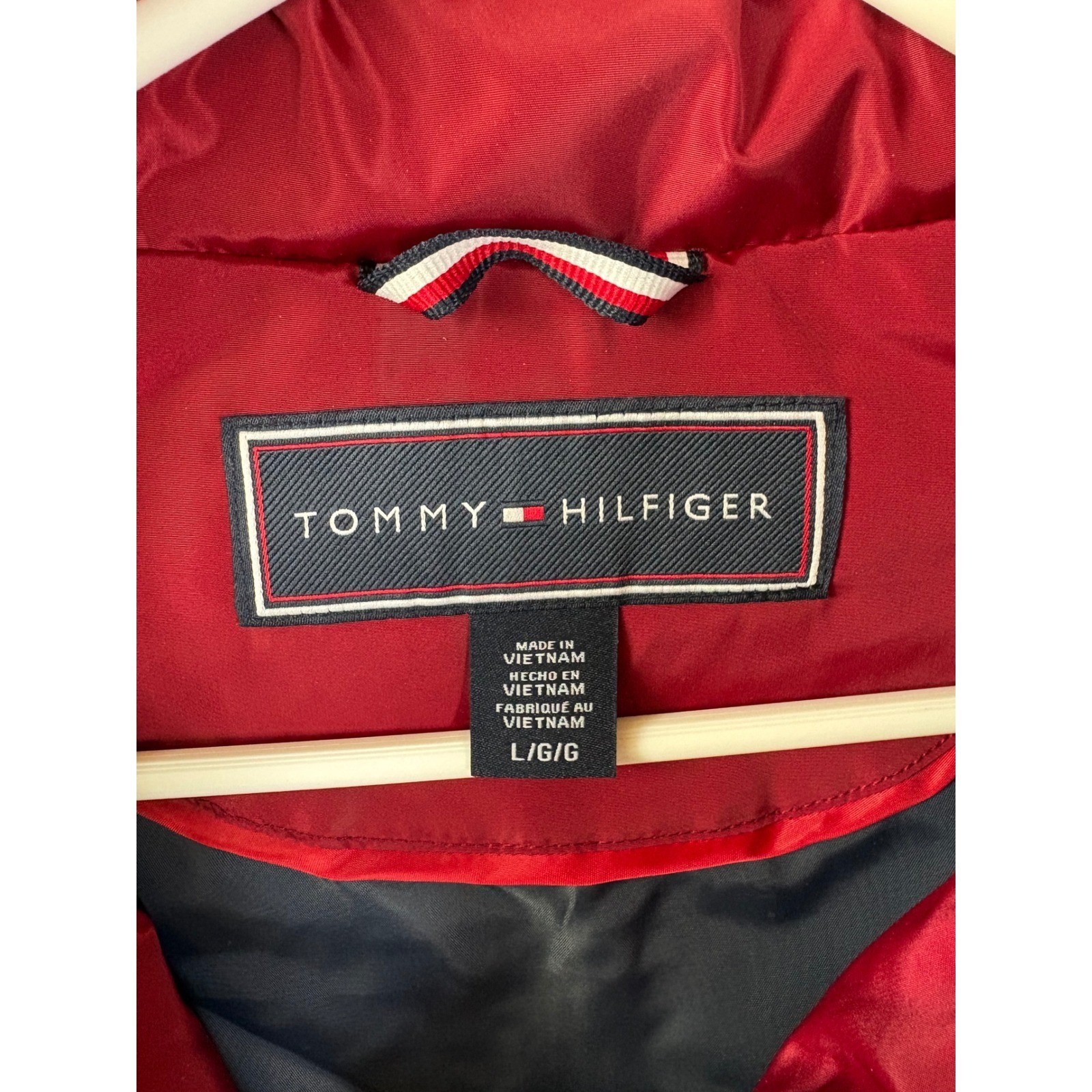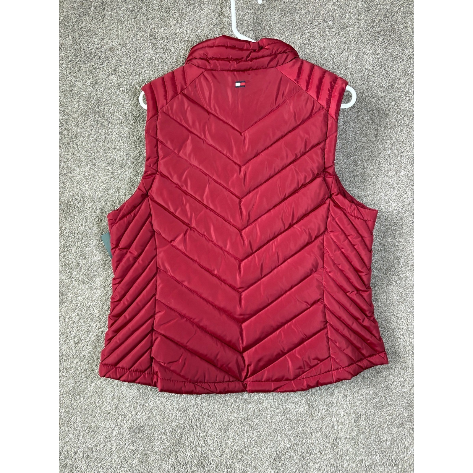 как выглядит NWT Tommy Hilfiger Women Puffer Vest Red Full Zip Stand Collar Sleeveless Size L фото