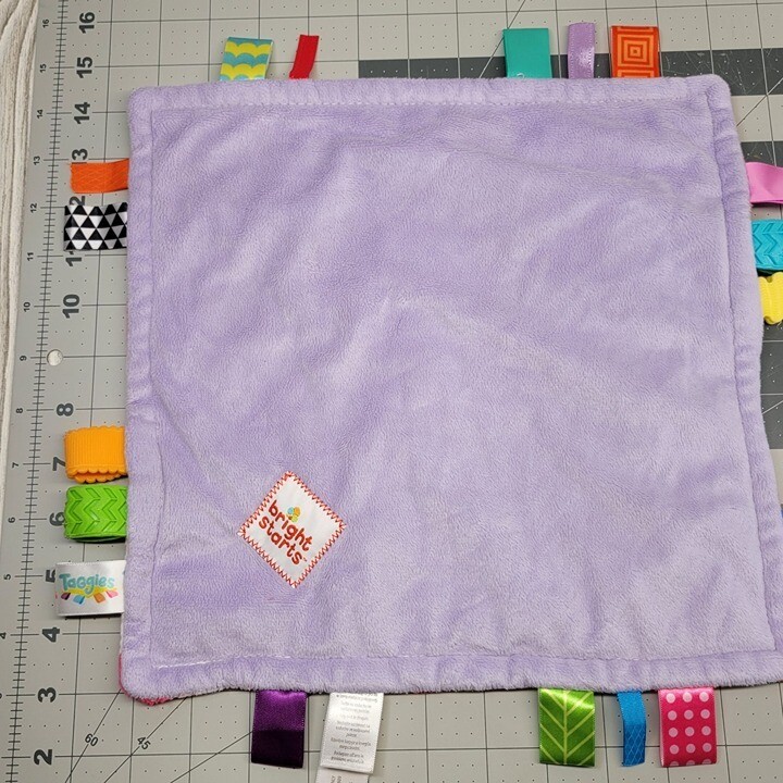 Bright Starts Taggies Security Blanket Baby Lovey Pink Flowers Floral Purple