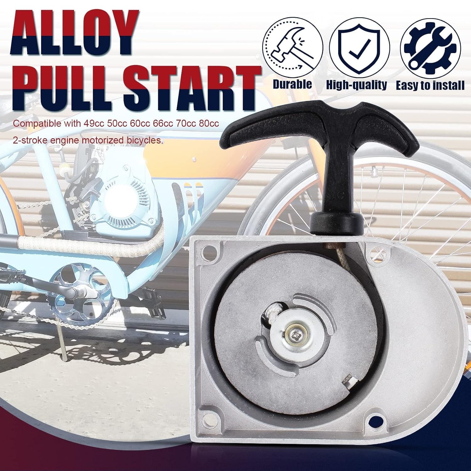 Alloy Pull Start for 49cc 50cc 60cc 66cc 70cc 80cc 2-Stroke Motorized Bike