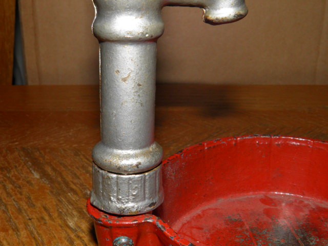 как выглядит ARCADE CAST IRON RED SILVER WELL PUMP WITH BASIN GOOD PIECE TAKE A LOOK фото