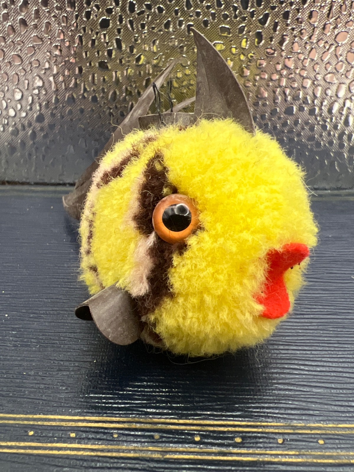 Vintage Steiff wool Yellow Coral Fish -Pom Pom no tag or button 1960s d