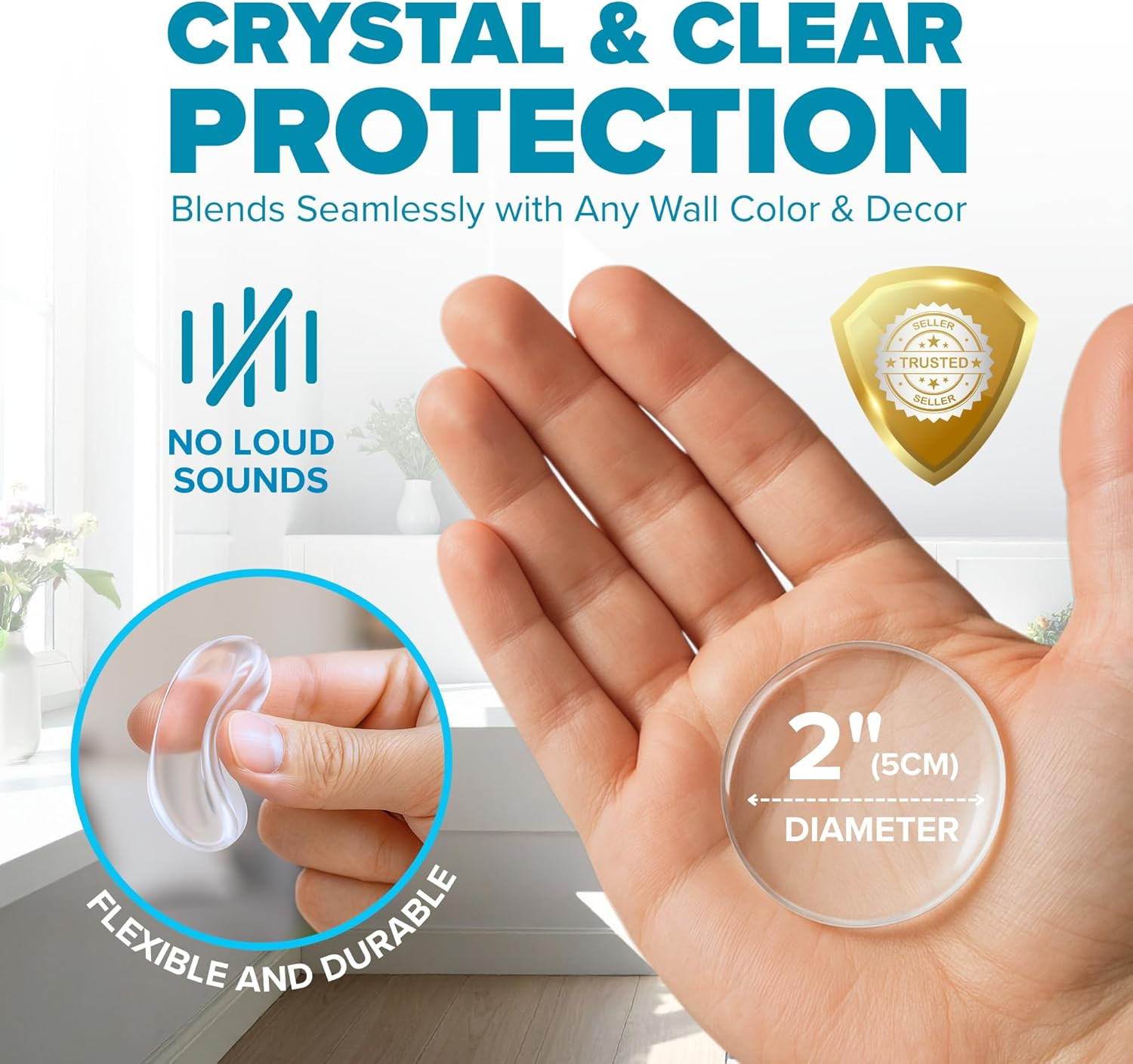 Wall Protector for Door Knobs, 2-Inch - Clear Self-Adhesive Door Stopper, 6-Pack