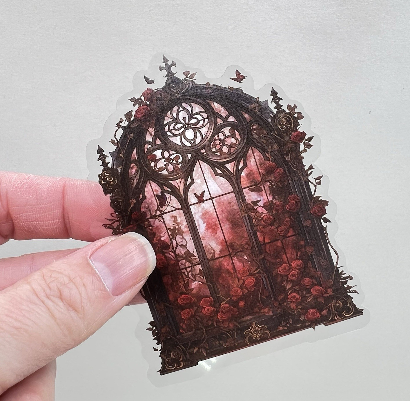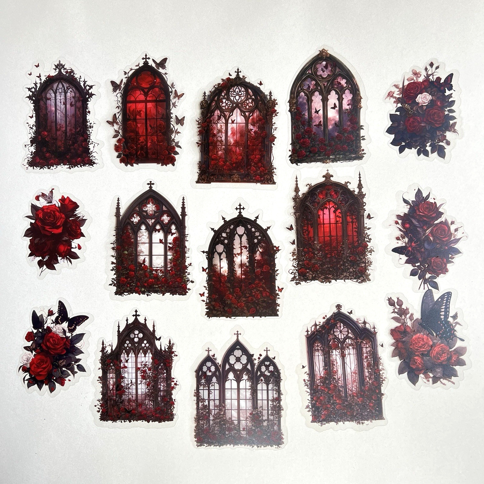 Dark Red Rose Gothic Window Stickers Junk Journal Collage Scrapbooking