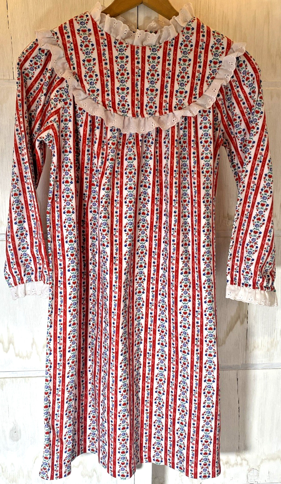 Lanz Of Salzburg Girls Medium Flannel Nightgown Classic Red Hearts And Flowers