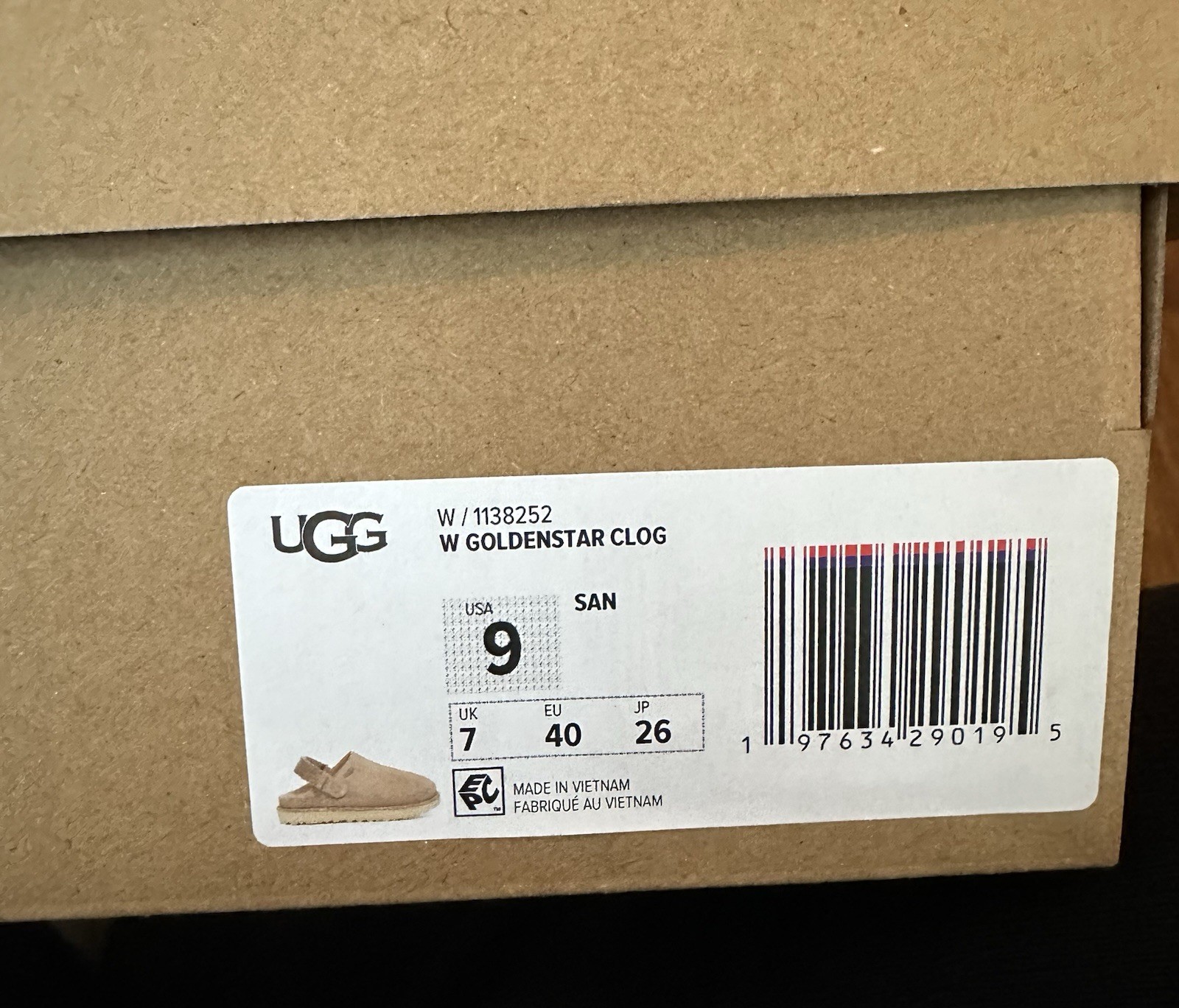 UGG Women's Goldenstar Clog Slippers Shoes Sand Size 9, New With Box