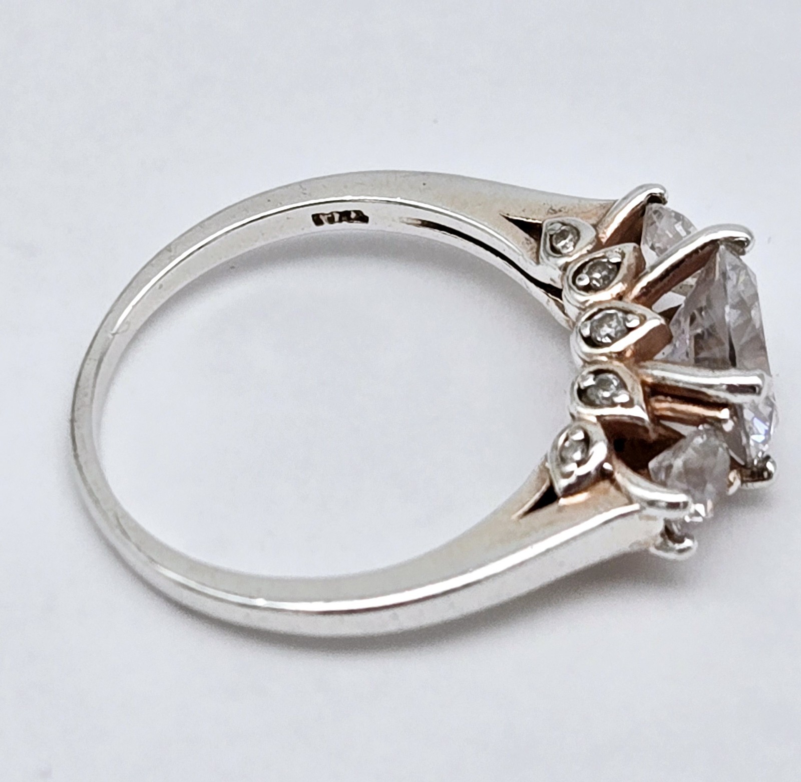 как выглядит VTG Sterling Silver Clear Gemstone Inlay Engagement Band Ring Size 7 - 3.4g фото