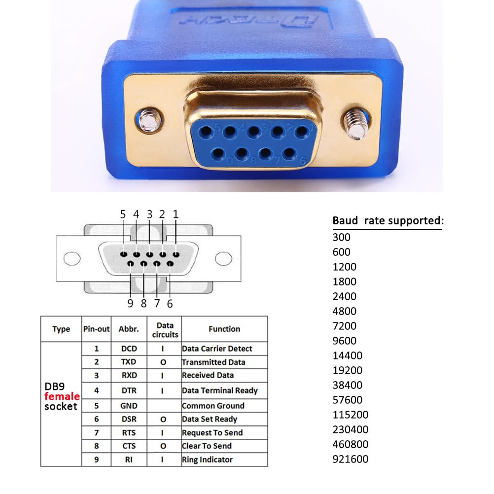 6 Feet USB to RS232 DB9 Female Serial Adapter Cable Windows 11 10 8 7 Mac Linux