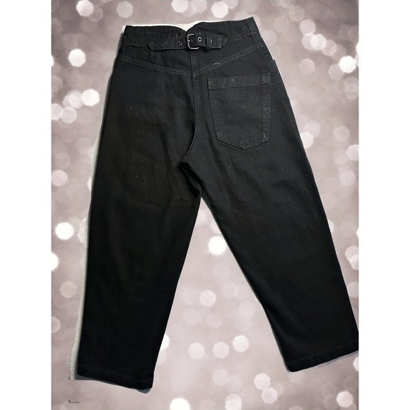 как выглядит ZARA Black Denim Cropped Wide Leg Jeans Front Zip Belted Waist фото