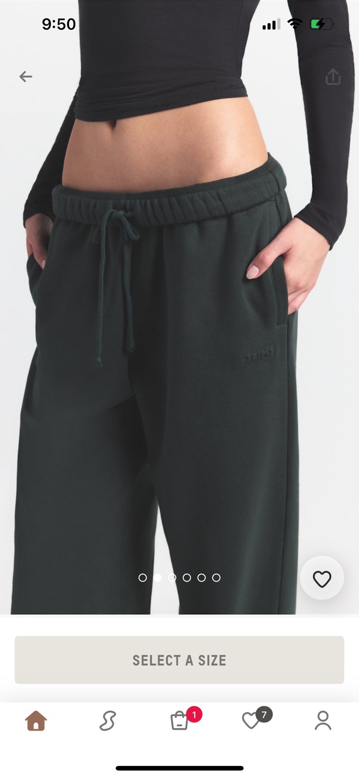 как выглядит Skims Cotton Fleece Classic Straight Leg Pant Size Medium Color Spruce NWT фото