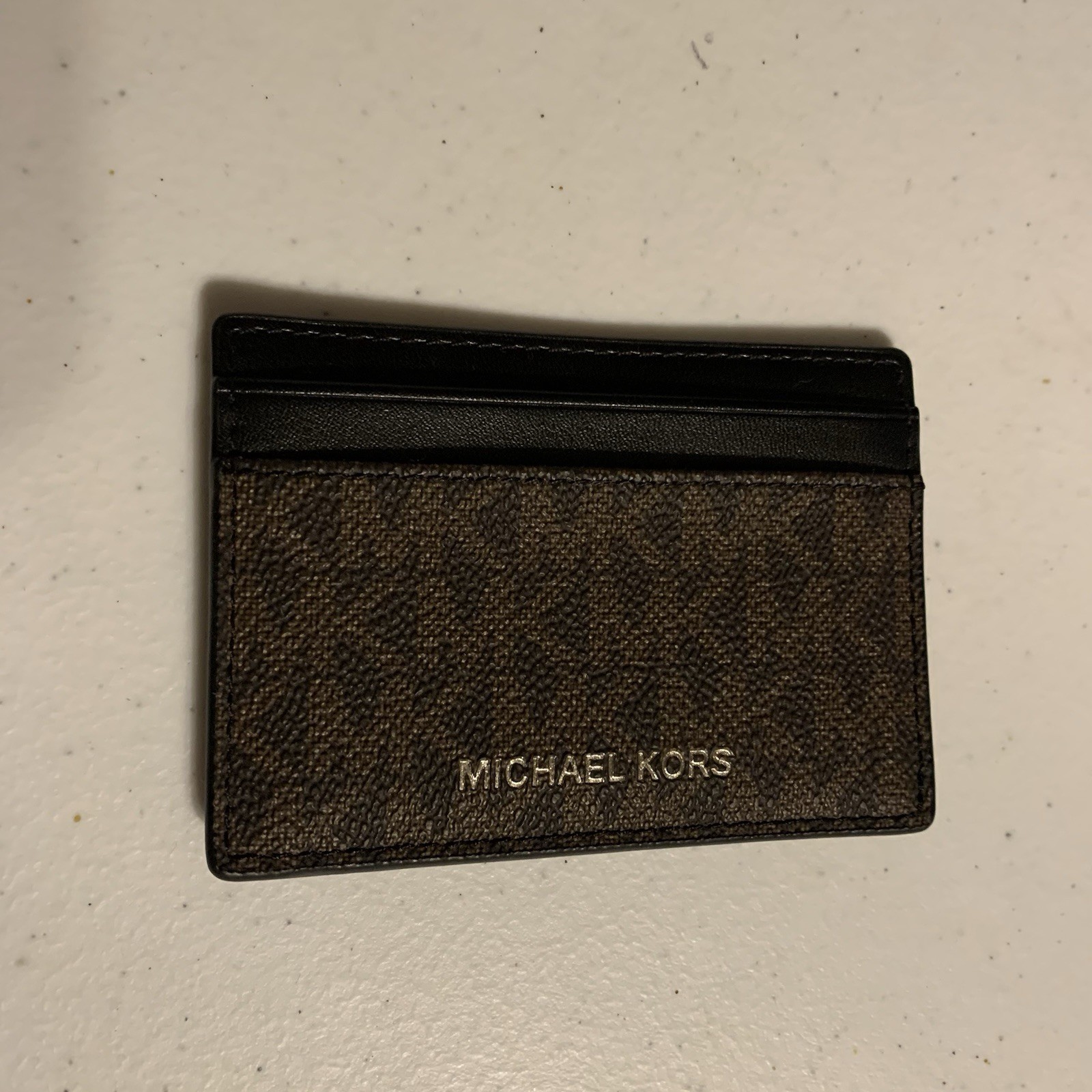 Michael Kors Cooper Signature Logo Print Card Holder Dark Brown ID Holder NWT