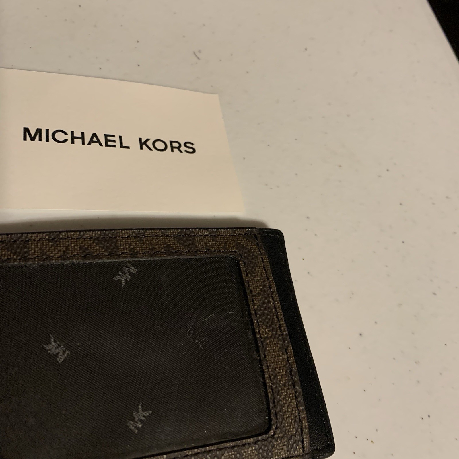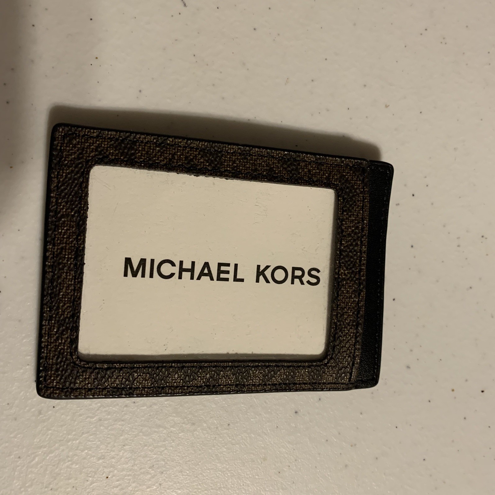 как выглядит Michael Kors Cooper Signature Logo Print Card Holder Dark Brown ID Holder NWT фото