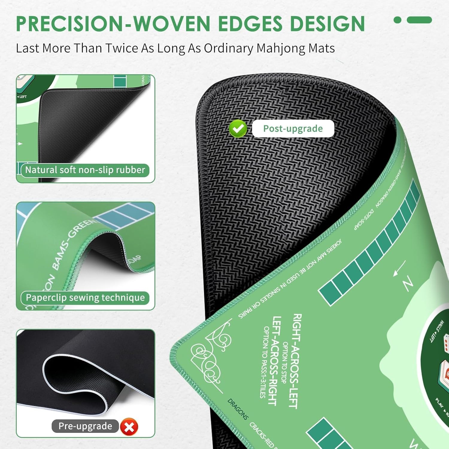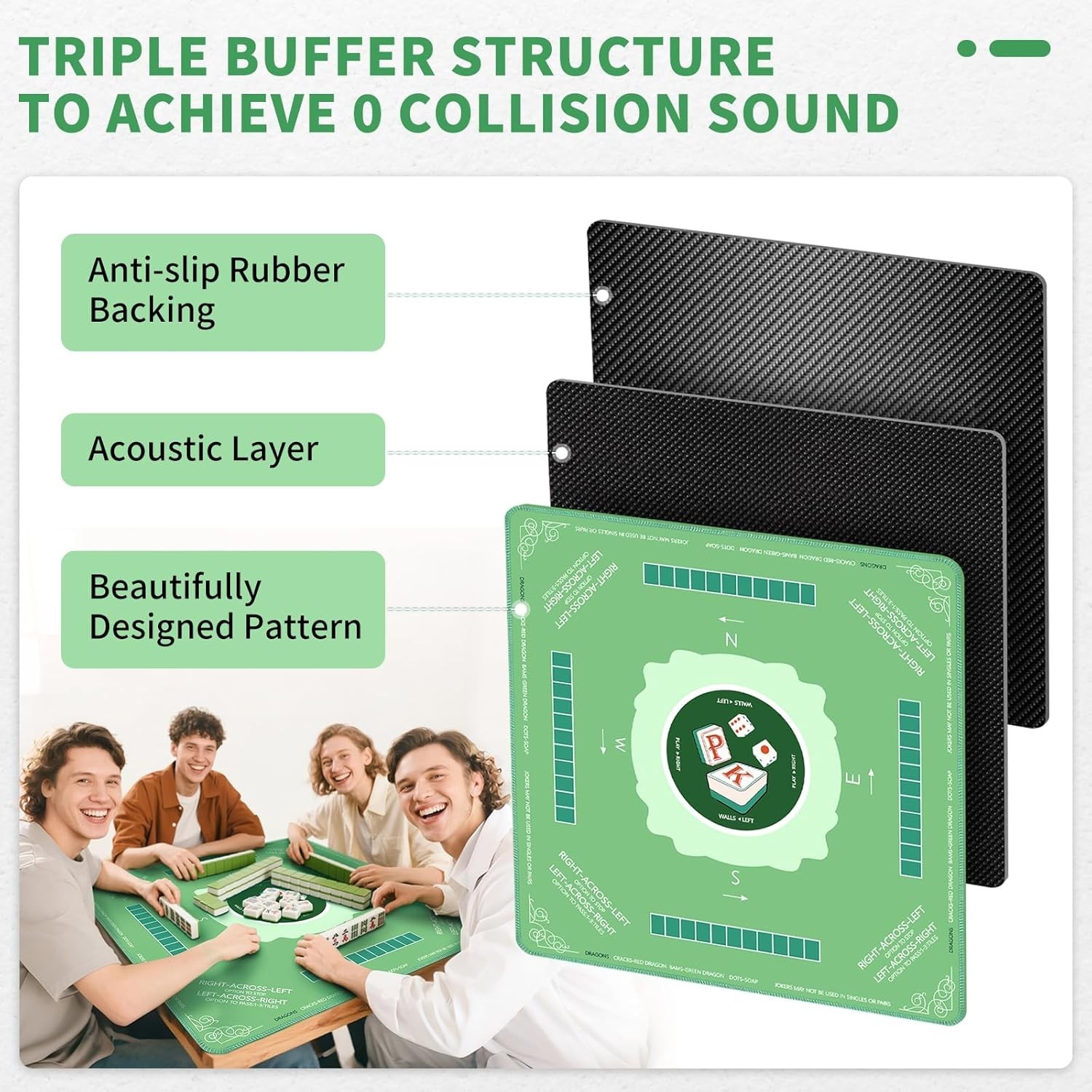 Mahjong Mat for Table- Anti Slip Noise Reduction Mahjong Mat with Rules, 31.5x31