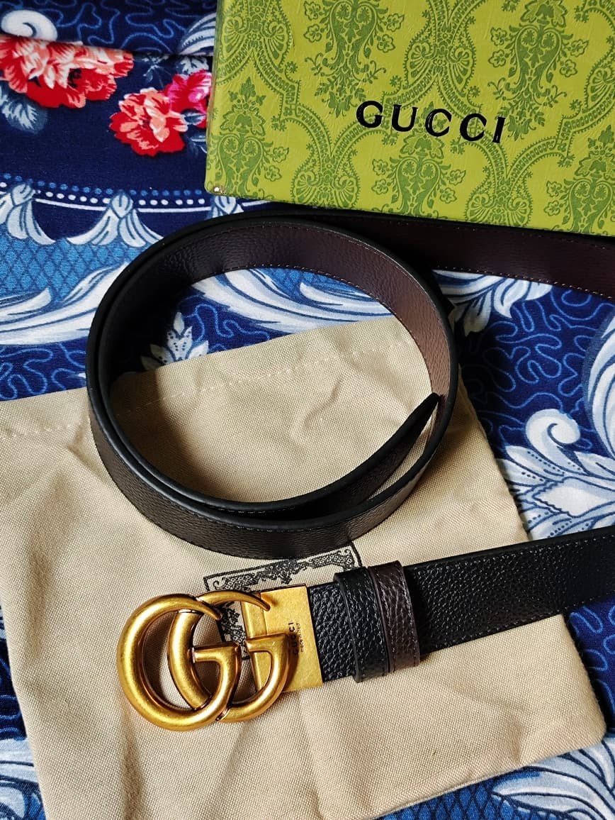 как выглядит Reversible Black/Brown Leather Marmont Gucci Belt Gold GG 105cm - US Duty Free фото