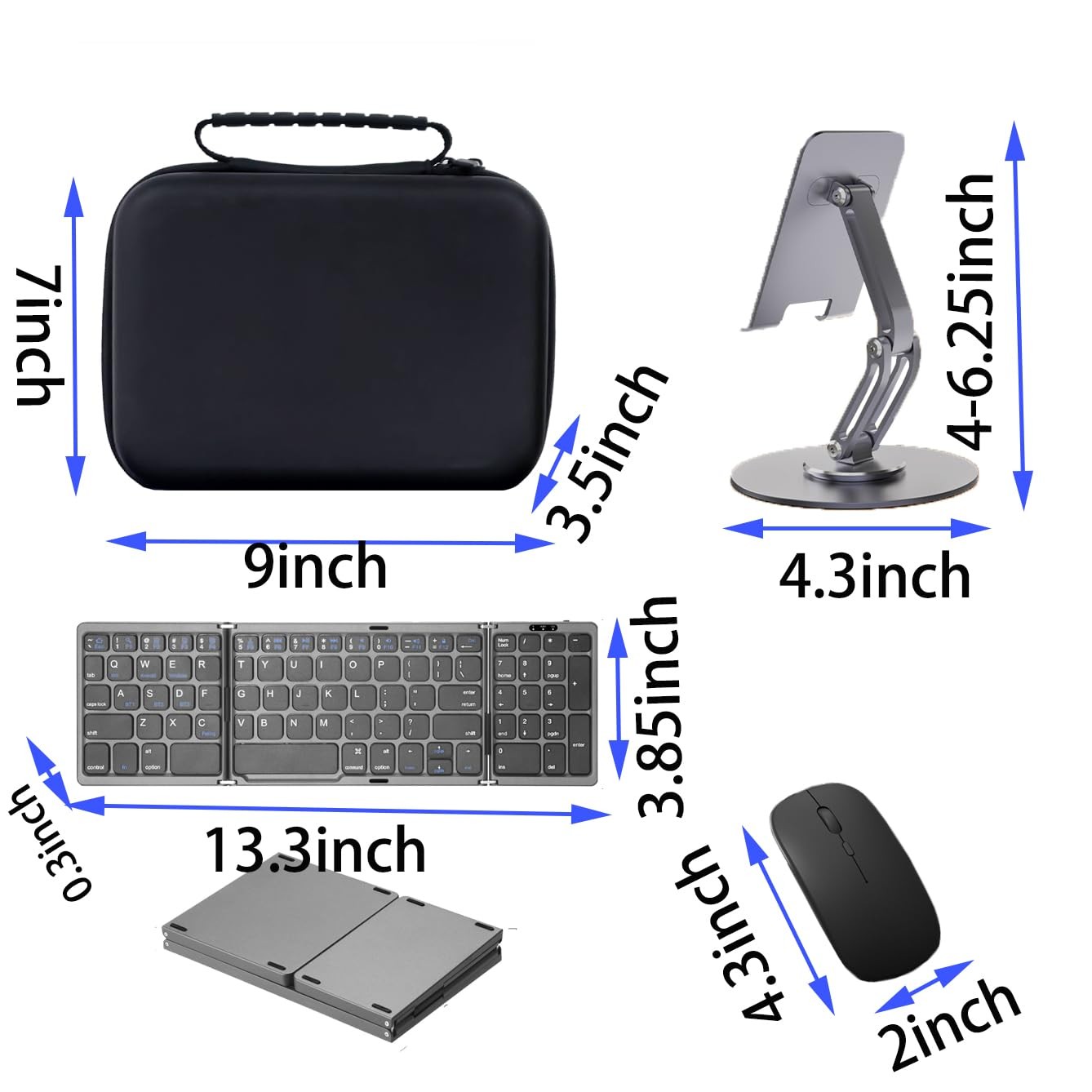 как выглядит Folding Bluetooth Keyboard and Mouse,360 Rotatable Metal Desk Stand with Bag... фото