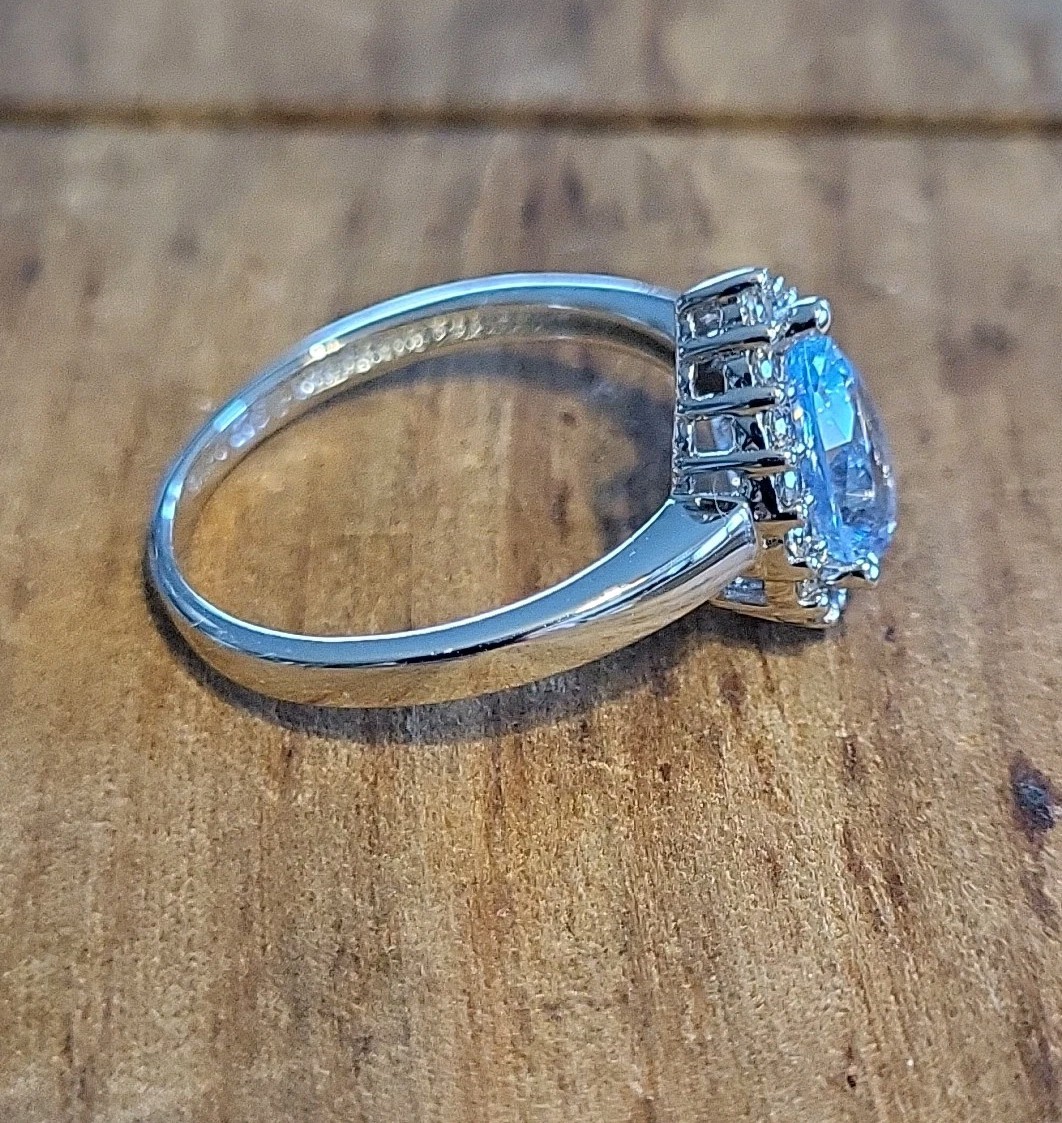 Beautiful Engagement/Promise Pear Cut Halo CZ Sterling Silver Ring 10mm