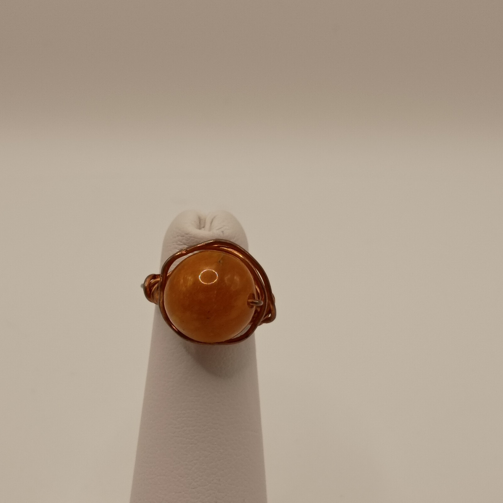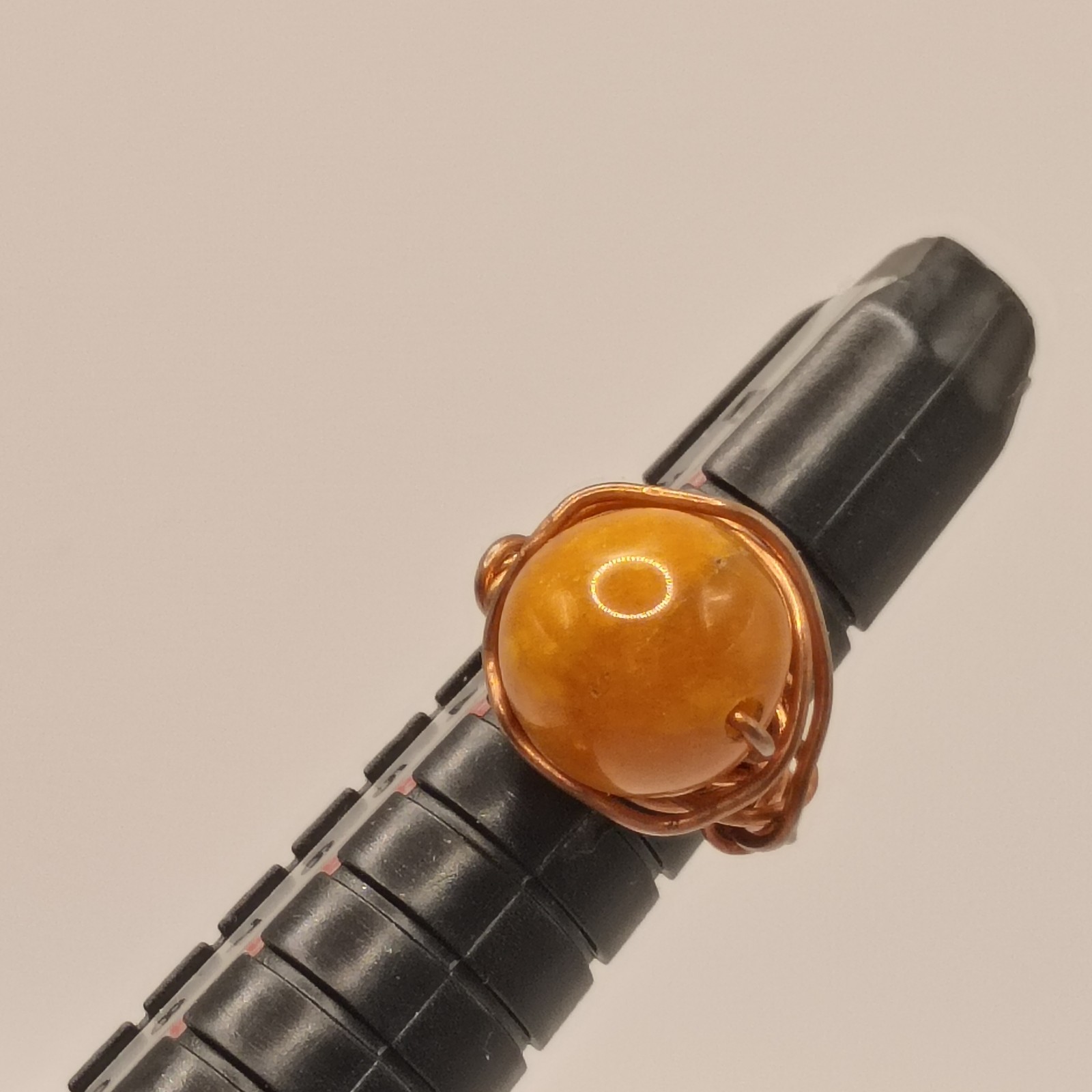 Vintage Copper Wire Wrapped Honey Orange Natural Stone Ring Size 2.75