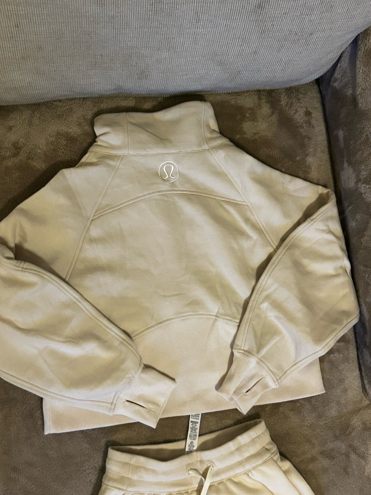 как выглядит lululemon Womens Beige Scuba Set Size 2 1/4 Zip Sweatshirt Pants фото