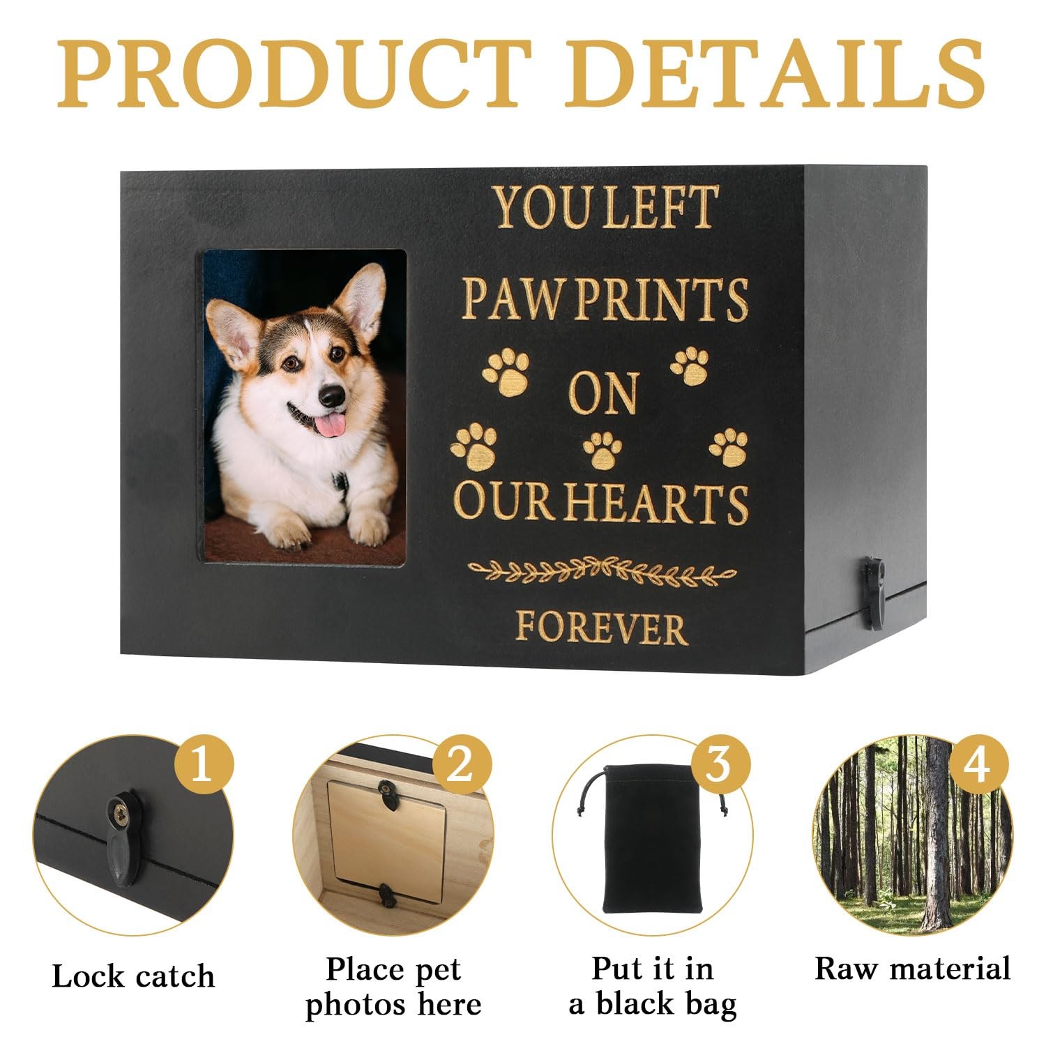 Pet Urns for Dog or Cat Ashes, Wooden Pet Memorial Urns with Photo Frame, Pet...