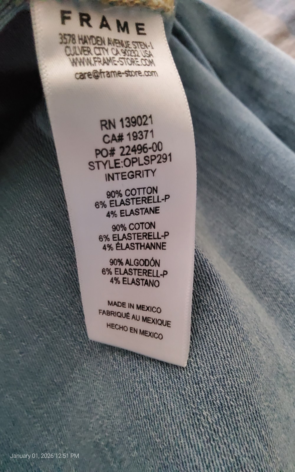Модель: Frame Le Slim Palazzoo Llight Waash