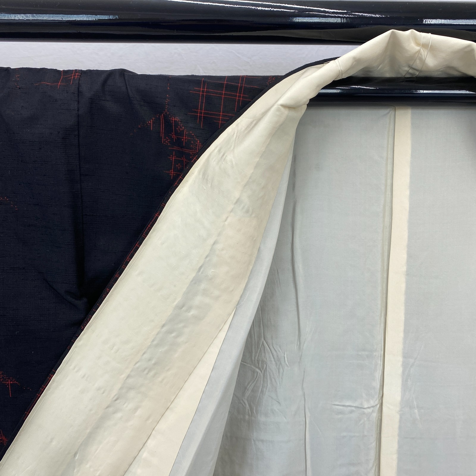 как выглядит Japanese Vintage Kimono Silk Black Tumugi Traditional Authentic Length 61 in фото