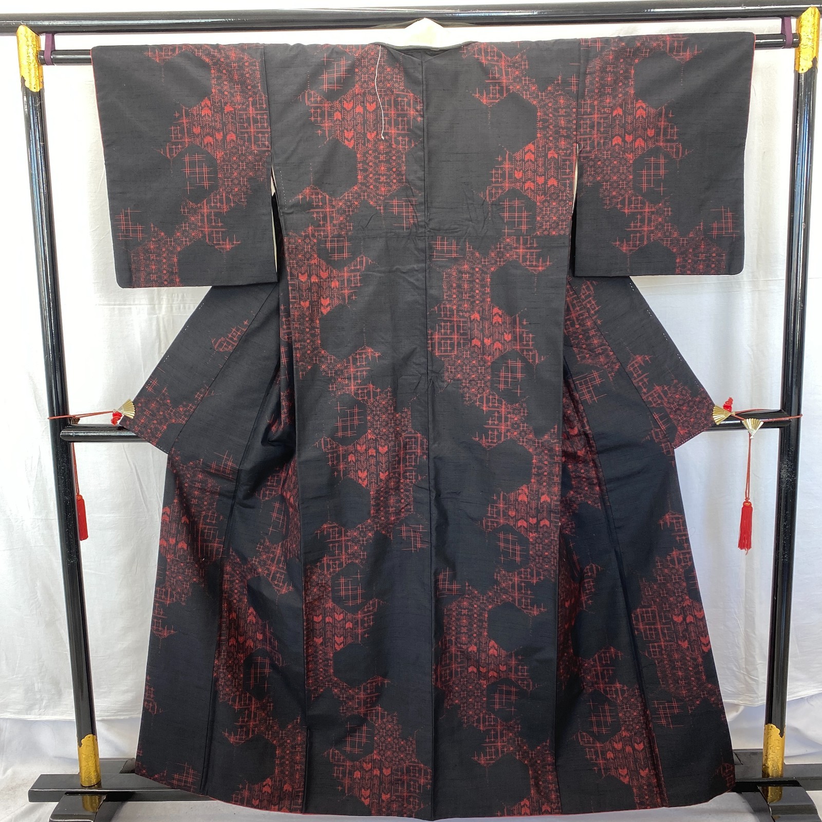 Japanese Vintage Kimono Silk Black Tumugi Traditional Authentic Length 61 in