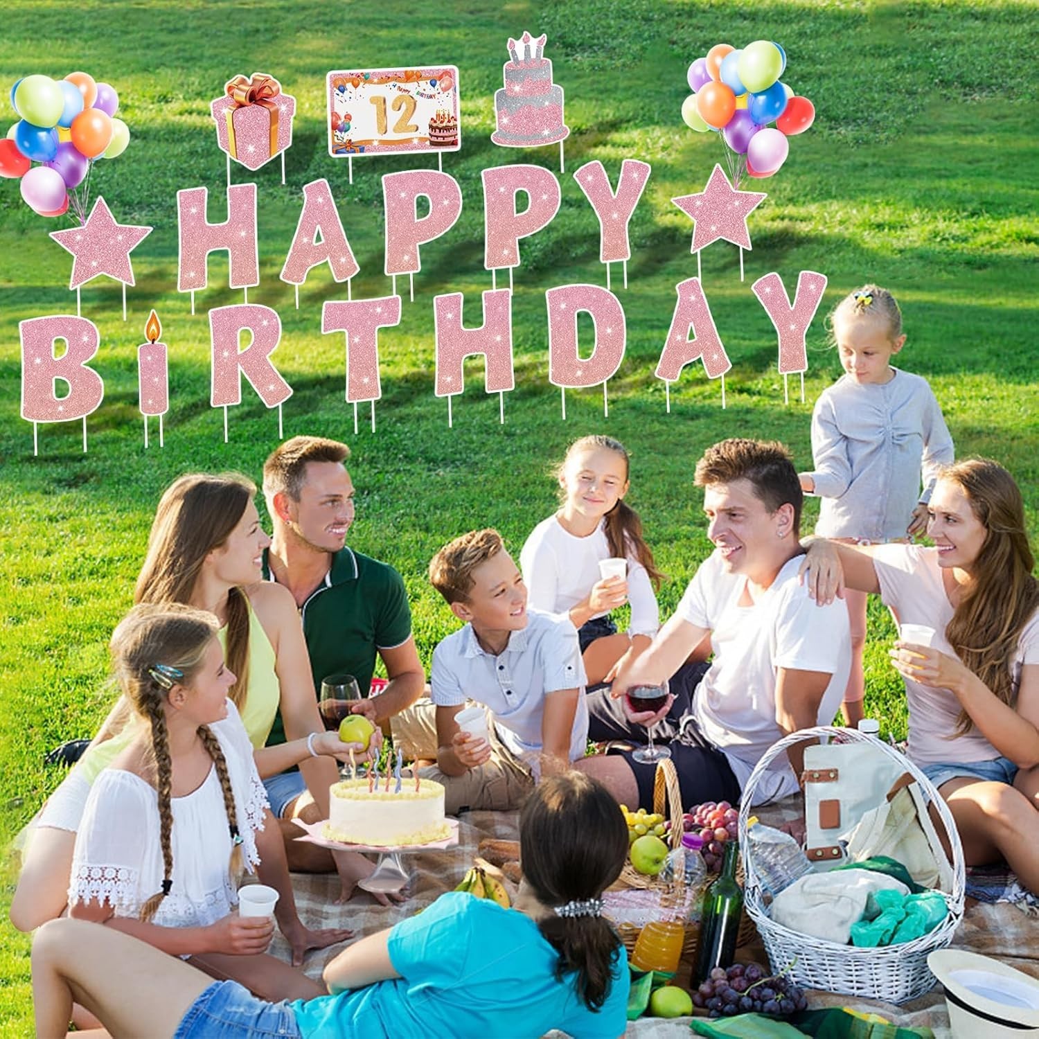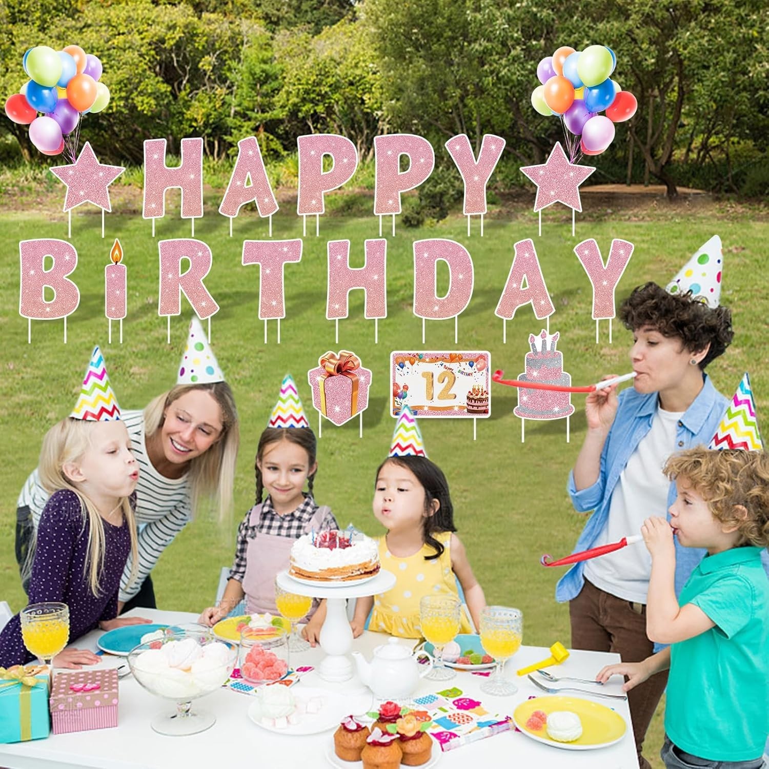 18 Pcs Happy Birthday Yard Sign with 32.8 ft Led Light, 16 Large Size Happy Bir