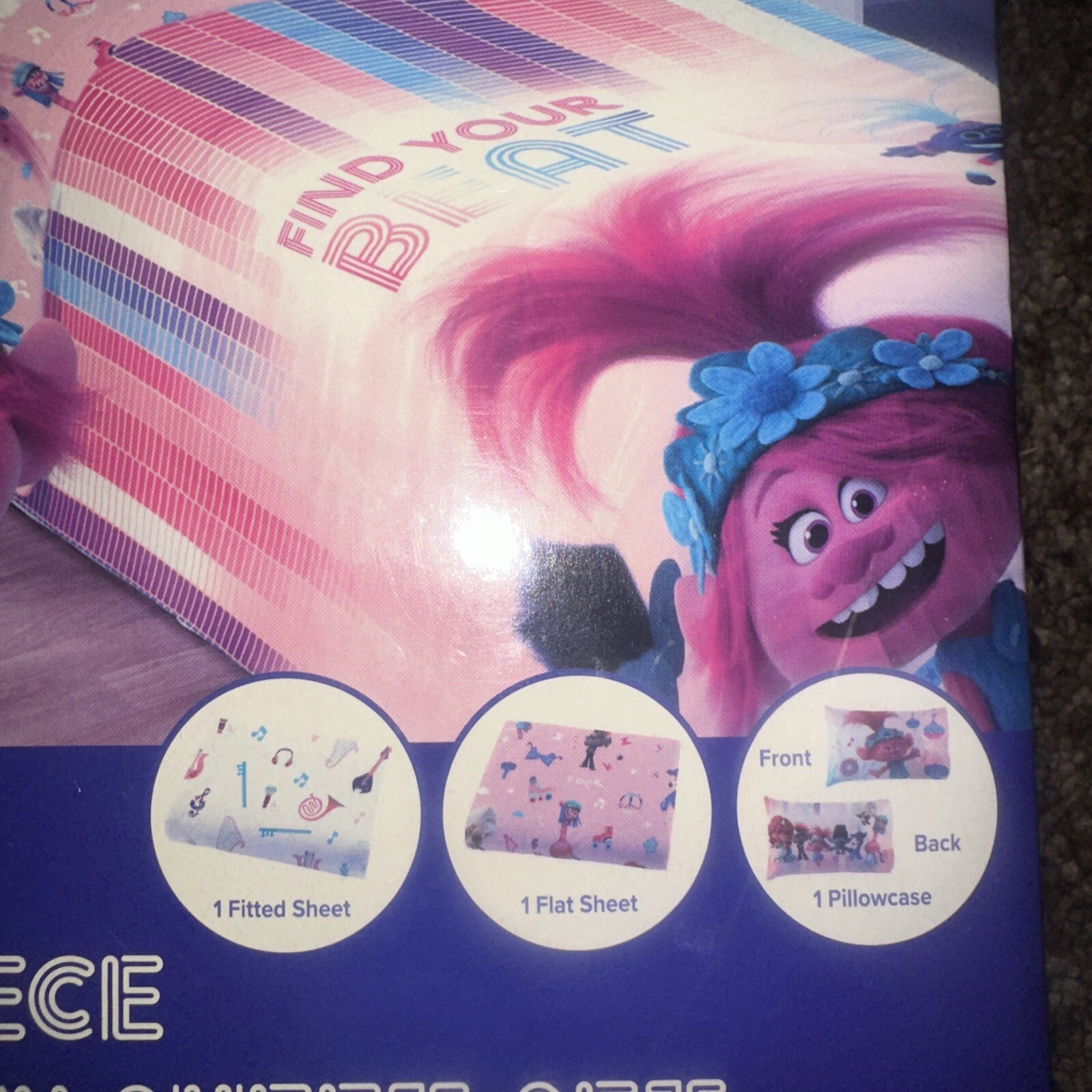 как выглядит Trolls World Tour Twin Sheet Set Poppy with Pillowcase 3 Piece set New фото