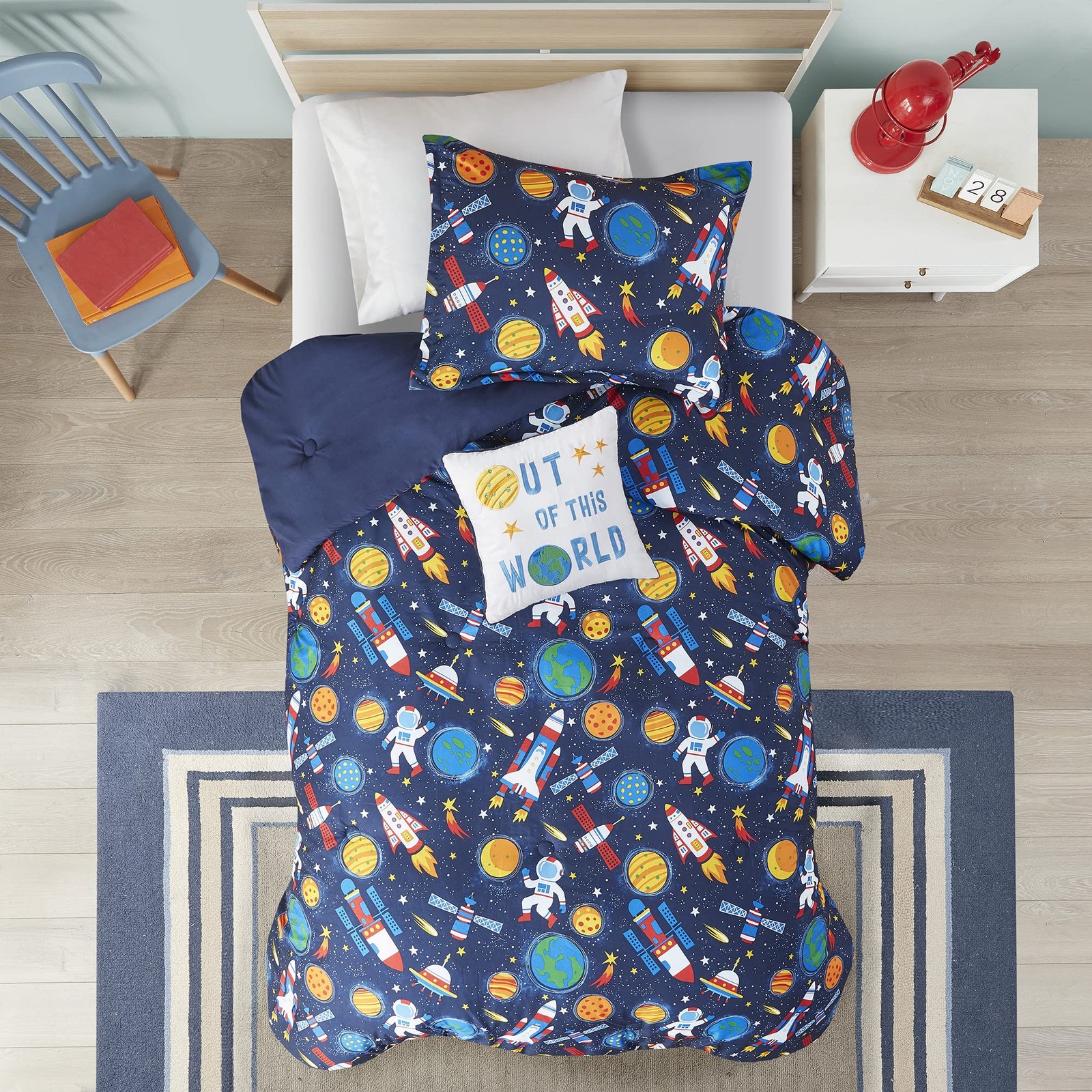 как выглядит Kids Cozy Comforter Outer Space Rocket Ships, Astronauts Print All Season Cov... фото