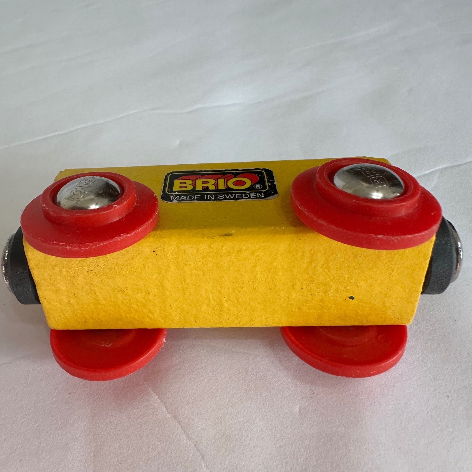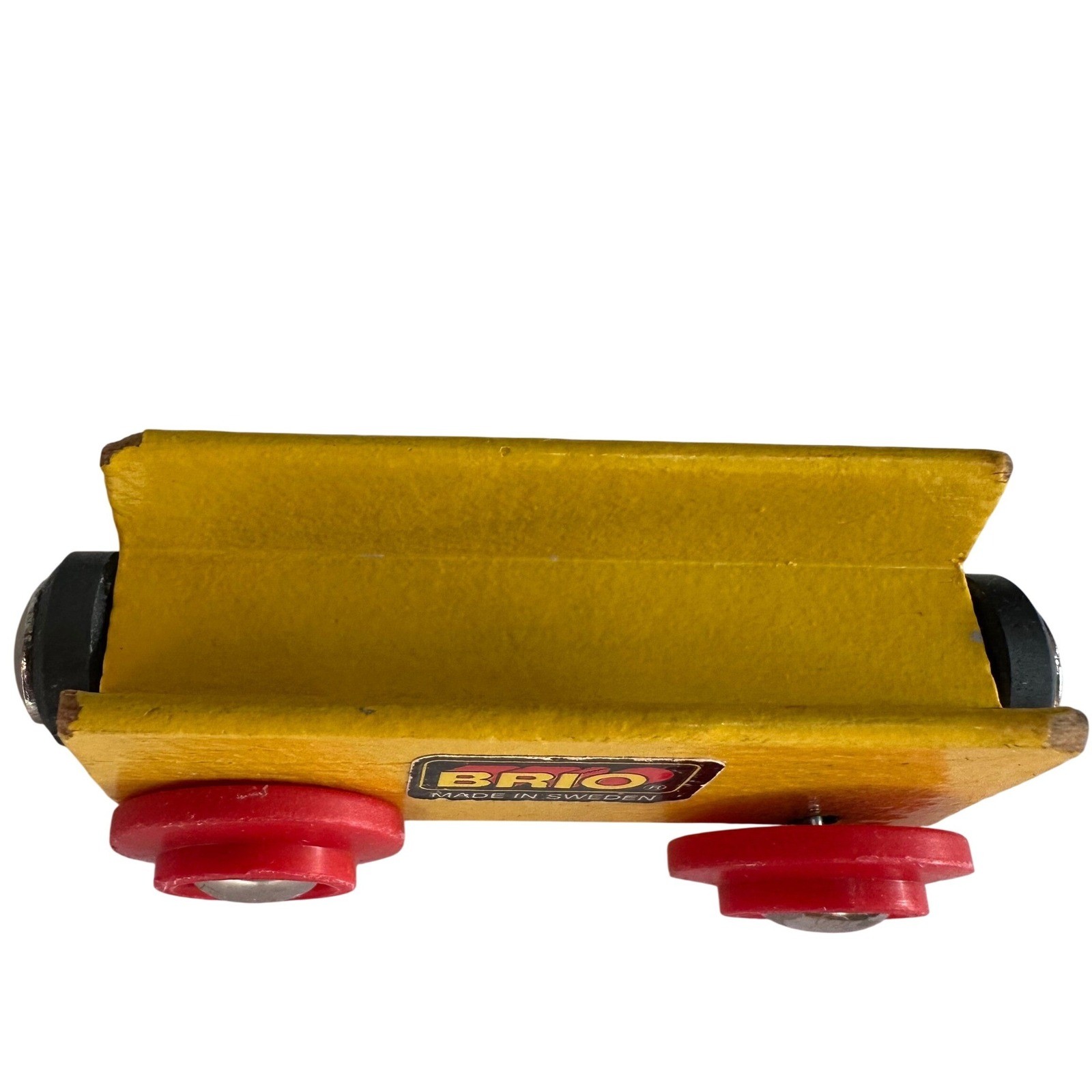 BRIO Wooden Train Car Wagon Yellow Red Wheels Made in Sweden