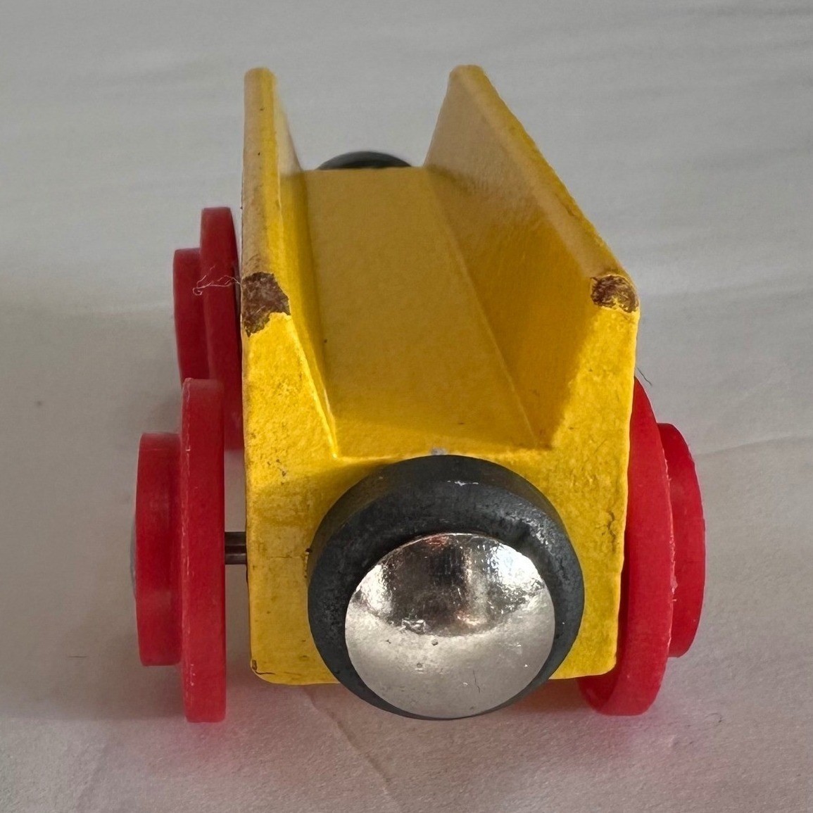 как выглядит BRIO Wooden Train Car Wagon Yellow Red Wheels Made in Sweden фото