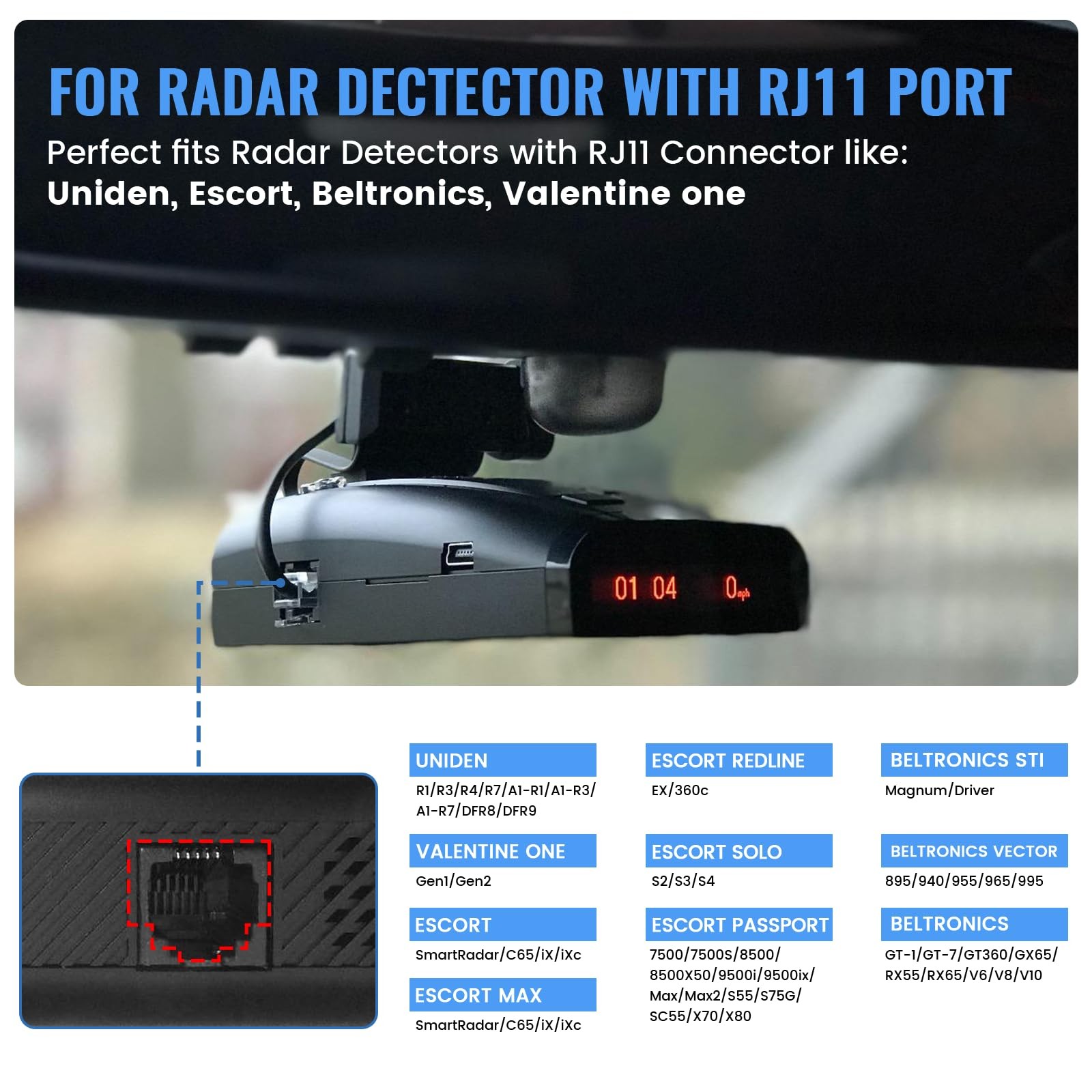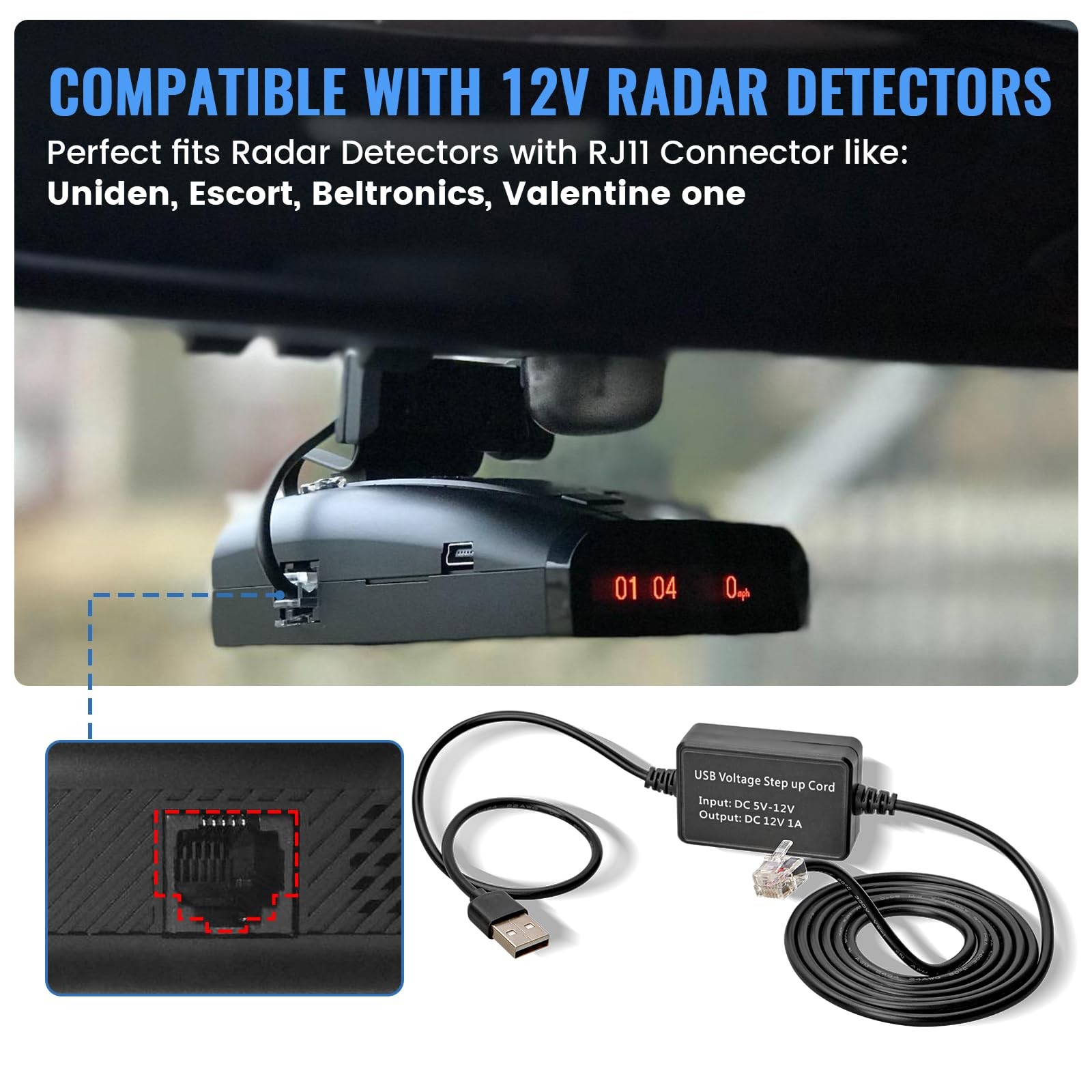 Radar Detector Cable, USB to RJ11 Plug Radar Detectors Power Cord Cable Adapt...