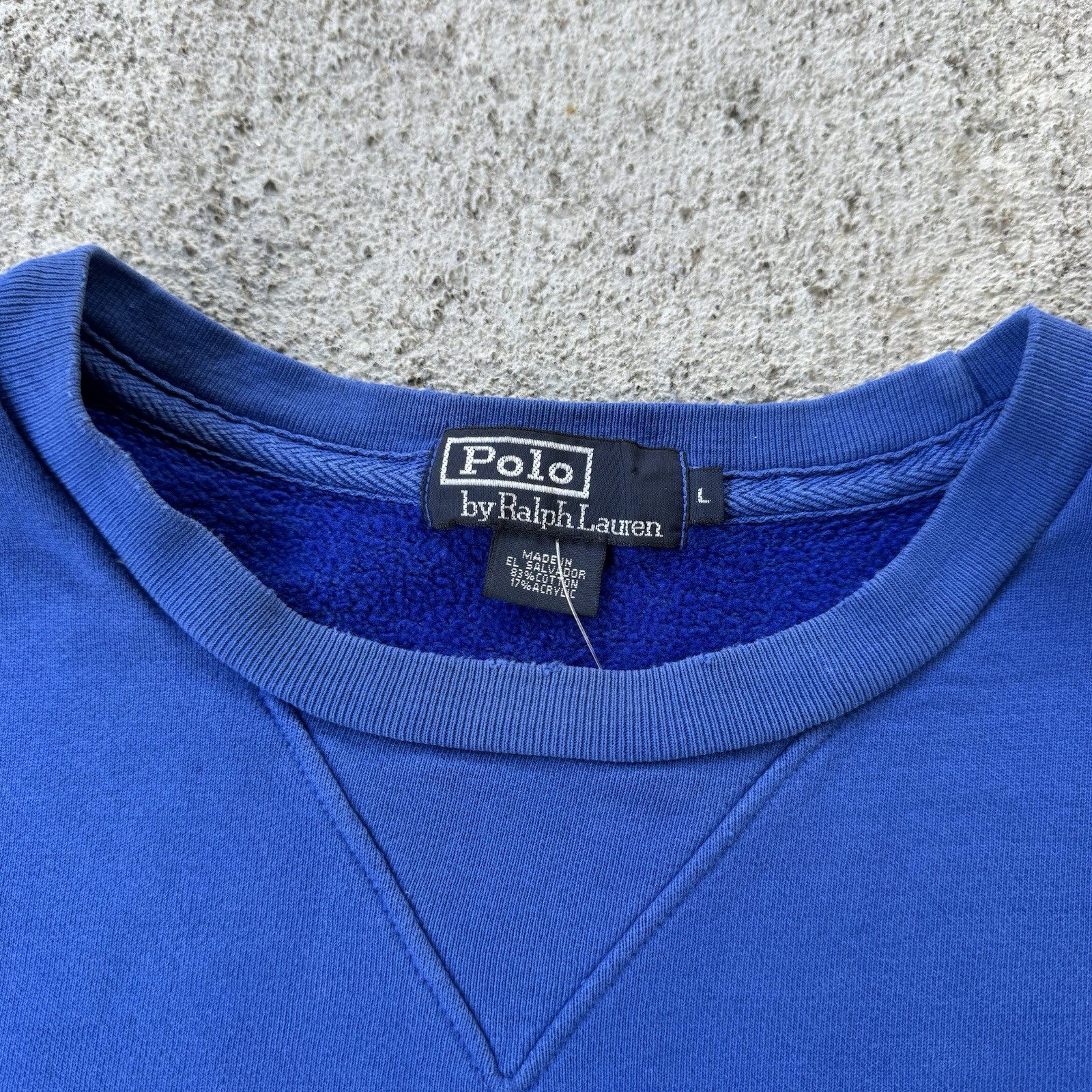 Vintage 90s Polo Ralph Lauren Crewneck Sweatshirt Blue Gray Pony Oversized Large