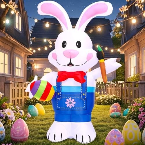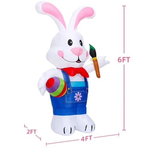 6FT Easter Inflatables Outdoor Decoration Inflatable Bunny, Built in LED