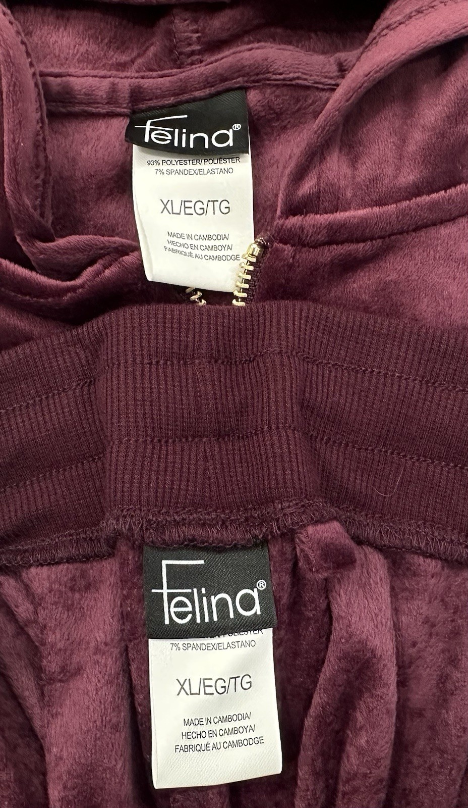 как выглядит Felina Womens 2-Piece Velour Hoodie Jogger Set, Fig Purple, Size XL фото