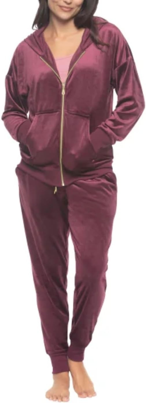 Felina Women's 2-Piece Velour Hoodie Jogger Set, Fig Purple, Size XL
